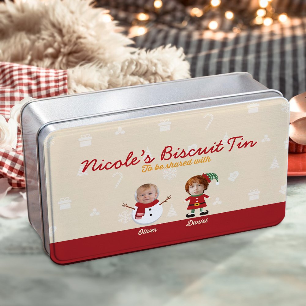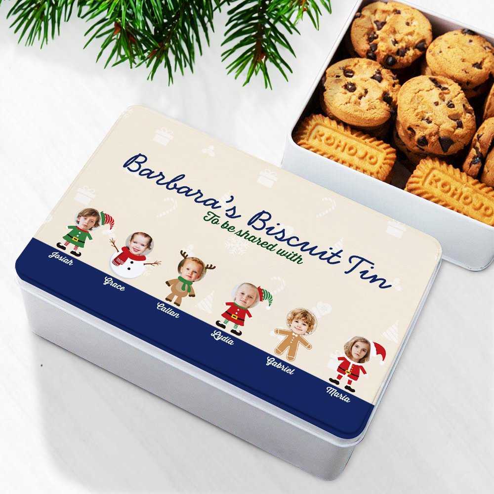 Cette délicieuse boîte à biscuits est ornée de personnages enchanteurs représentant des bonshommes de neige, des rennes, le Père Noël et des bonshommes en pain d'épices, qui reflètent parfaitement l'esprit des fêtes de fin d'année. Avec la possibilité de la personnaliser avec 1 à 6 photos de visage et noms, chaque boîte devient un souvenir unique qui ajoute une touche personnelle à vos fêtes de fin d'année.