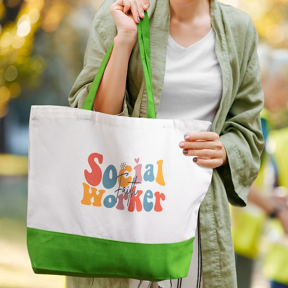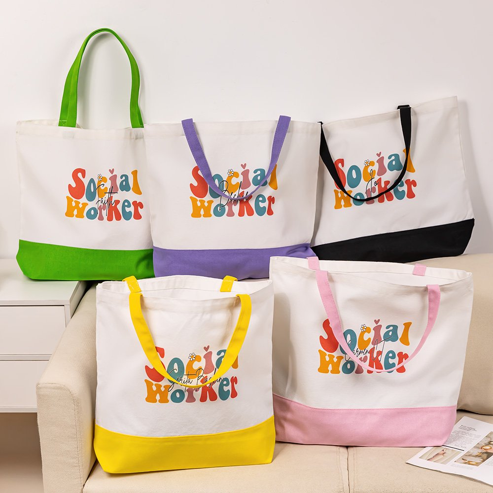 Ce sac fourre-tout présente le lettrage artistique "Travailleur social" à côté de votre nom personnalisé, avec un choix de 5 couleurs vibrantes pour s'adapter à toute personnalité. Décoré de charmantes marguerites, l'ensemble du design présente un effet artistique unique, plein de profondeur et d'amusement.