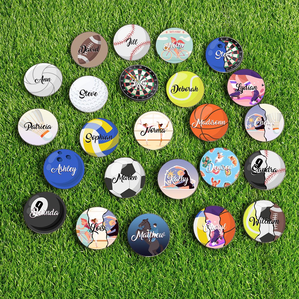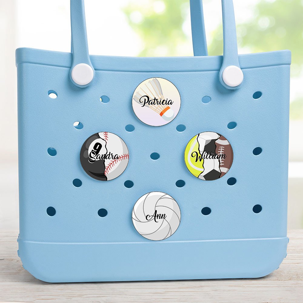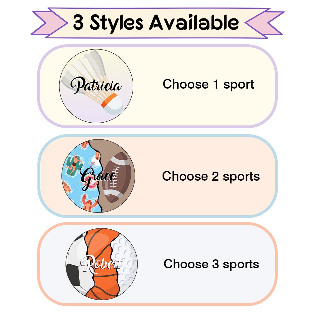 Cette breloque de sac personnalisée présente une variété de sports et de ballons, dont le basket-ball, le football, le tennis, le volley-ball et bien d'autres, ainsi que des représentations d'activités telles que le yoga, la natation et le cyclisme. Vous pouvez ajouter votre nom, complété par des couleurs vives, pour mettre en valeur votre énergie et votre passion uniques.