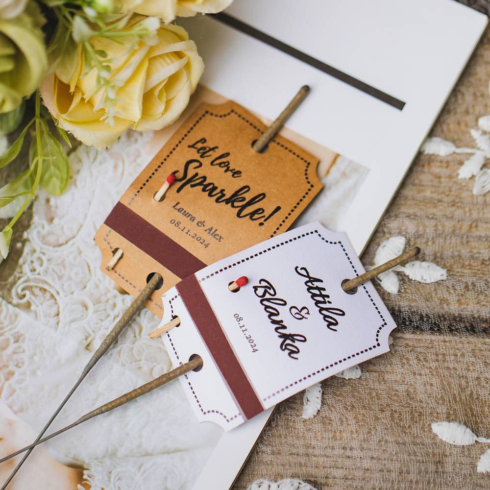 Ce qui distingue nos étiquettes scintillantes est l'ajout ingénieux d'une bande de frappe et d'un support. Vos invités peuvent allumer leurs cierges magiques sans effort, éliminant ainsi le besoin de briquets séparés. C'est à la fois commodité et enchantement.
