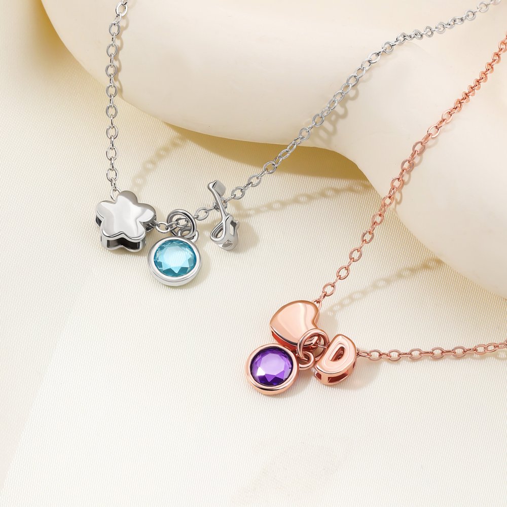 Ce collier exquis comporte deux options de personnalisation, ce qui vous permet de choisir un style qui reflète votre personnalité. Magnifiquement complété par un pendentif en forme de cœur qui met en valeur une magnifique pierre de naissance en cristal, ce collier capture l'essence de l'amour et des moments spéciaux, ce qui en fait un accessoire précieux pour toutes les occasions.