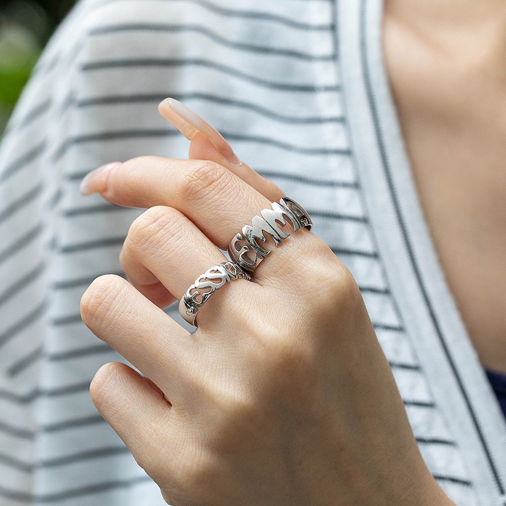 Notre bague est simple et généreuse, la bague est un design circulaire, avec la personnalisation du nom comme caractéristique principale, vous pouvez personnaliser votre nom ou celui de votre proche sur la bague, et il suivra le contour de la bague autour de votre doigt, condensant l'émotion qui est parfois difficile à exprimer avec des mots, c'est une représentation intemporelle de l'amour et de l'affection. Portez-la pour vous rappeler l'amour qui vous lie l'un à l'autre ou pour témoigner de vos véritables sentiments.