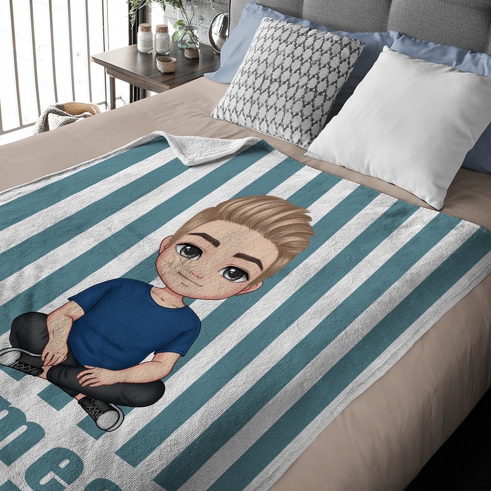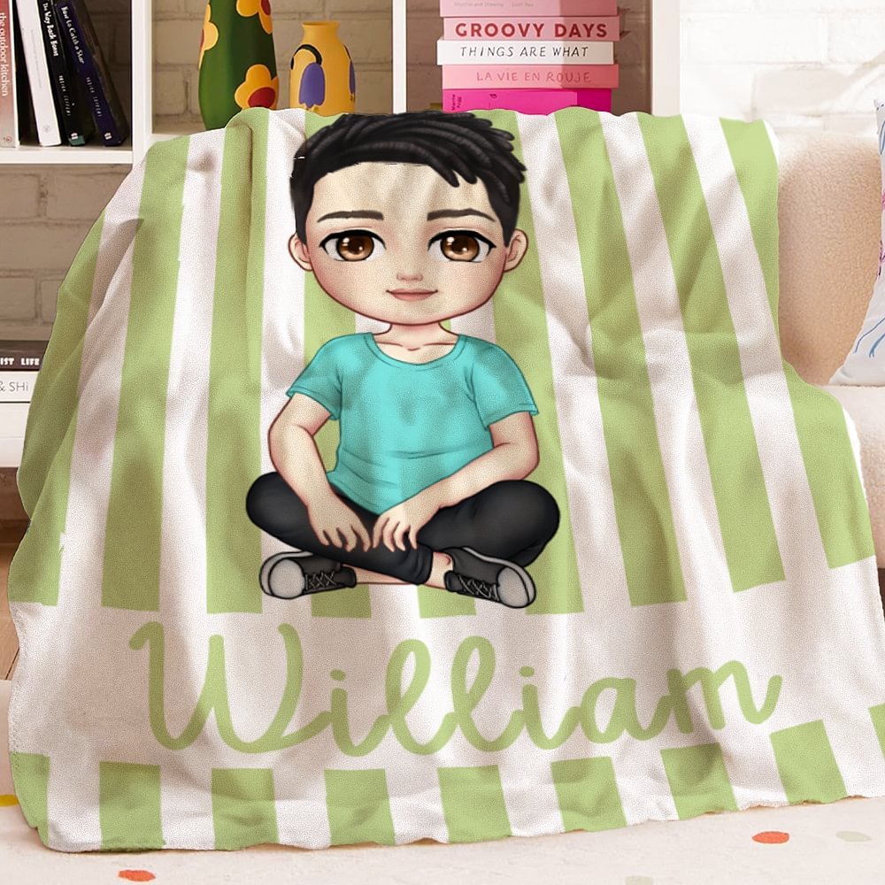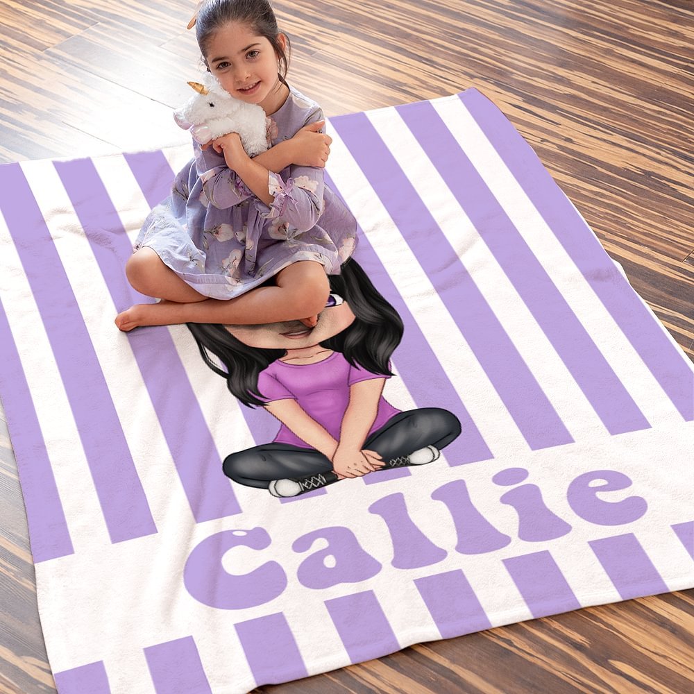 Cette couverture moelleuse présente un ravissant motif à rayures orné de personnages de dessins animés personnalisables. Parfaite pour tous les âges, vous pouvez ajouter leur nom pour créer une touche unique et personnelle et en faire un souvenir précieux.