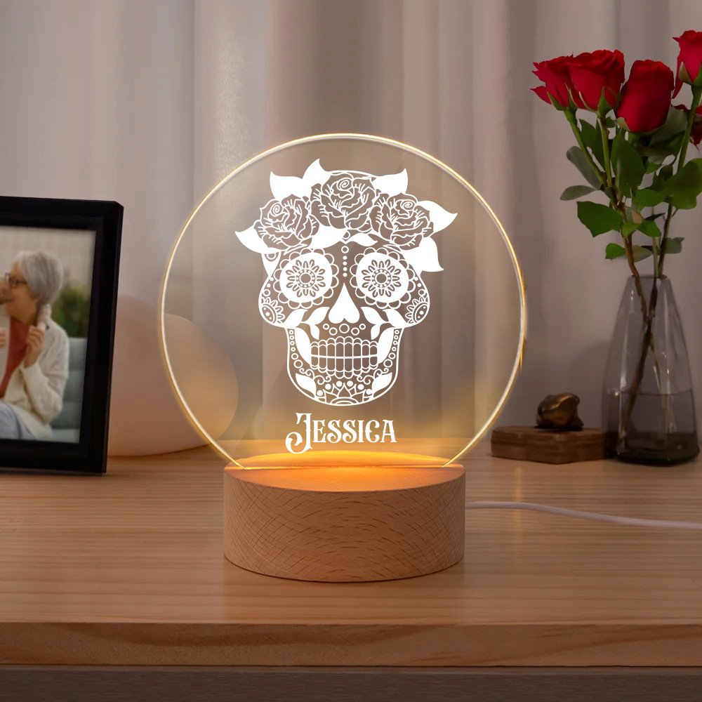 Dotée d'un magnifique motif floral mexicain de crâne de sucre, cette veilleuse peut être personnalisée avec le nom d'une personne décédée ou une ligne de texte significative. Elle ajoute un élément significatif et personnel à tout décor festif.