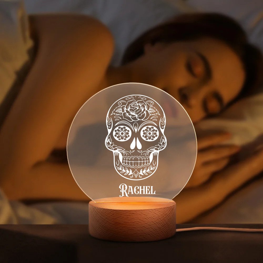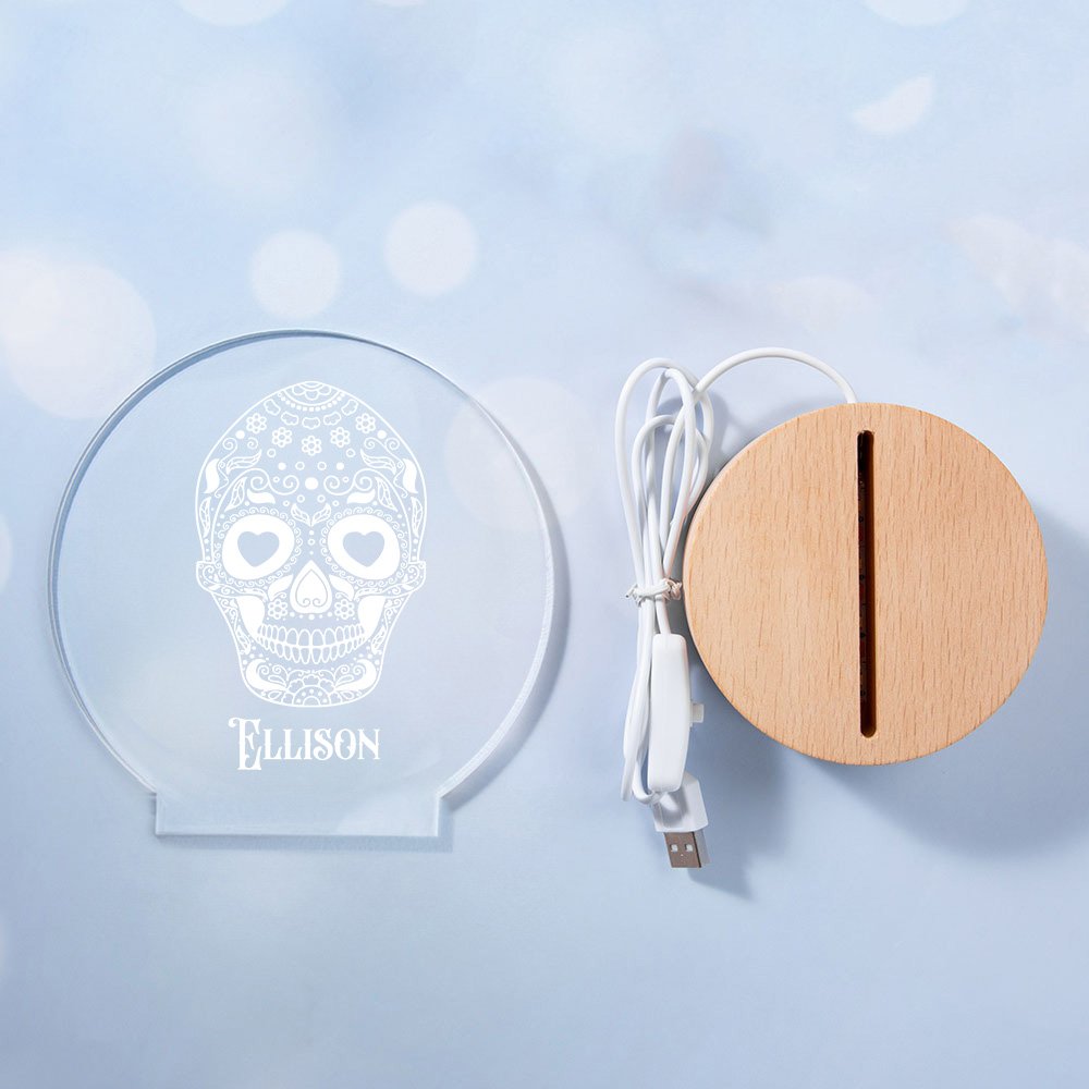 | Caractéristiques: | Transparence, inaltérable, veilleuse LED, motif crâne de sucre |