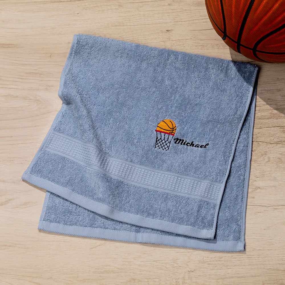 Cette serviette a un design unique avec des couleurs unies comme ton principal, et un motif de basket-ball brodé dans le coin inférieur droit, montrant la vitalité du sport. Vous pouvez y ajouter votre nom pour créer un accessoire de sport unique.