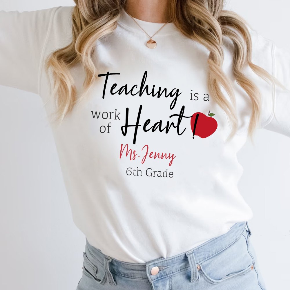 La phrase "L'enseignement est une œuvre de cœur" résume parfaitement la passion, le dévouement et l'amour que les enseignants apportent chaque jour à leur classe. Le motif de la pomme sur ce vêtement n'est pas seulement adorable, il symbolise aussi la connaissance et la croissance. Son design épuré et élégant, avec un message réconfortant et un nom et un texte personnalisables, en fait un article unique qui se distinguera parmi les autres cadeaux.