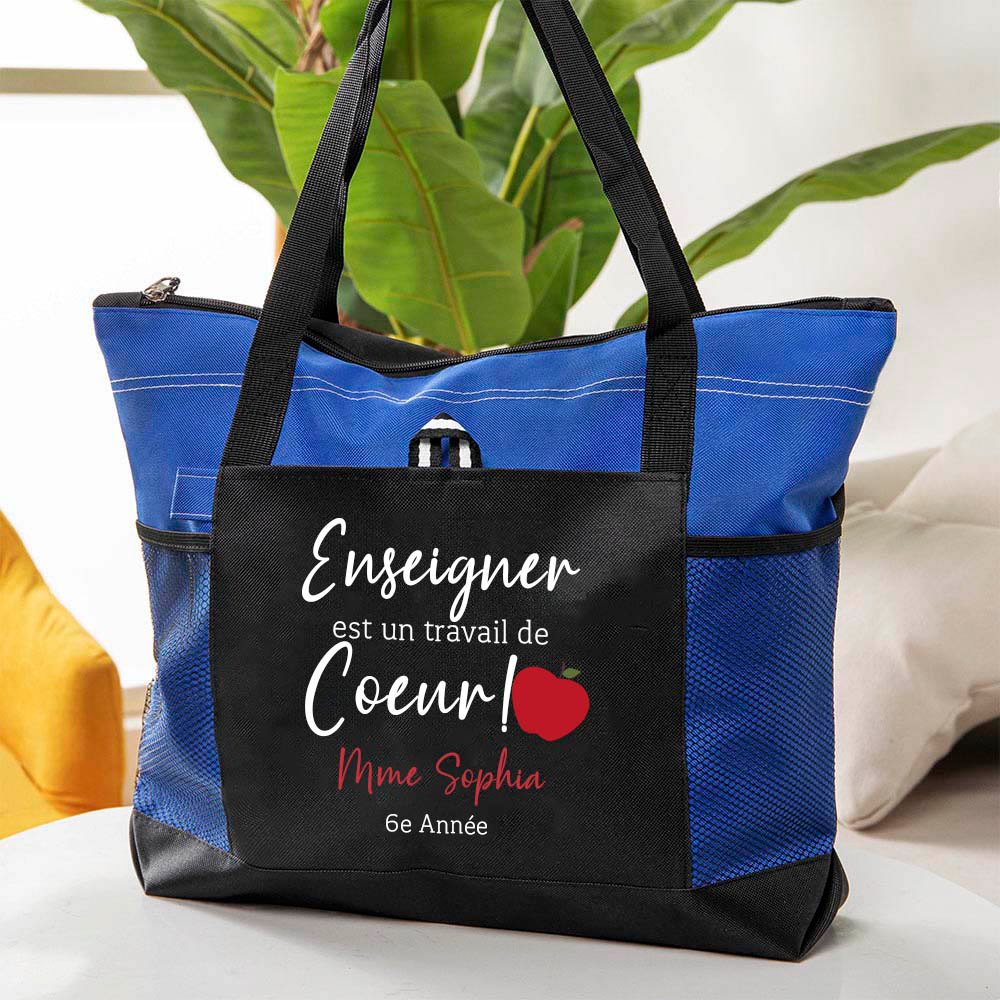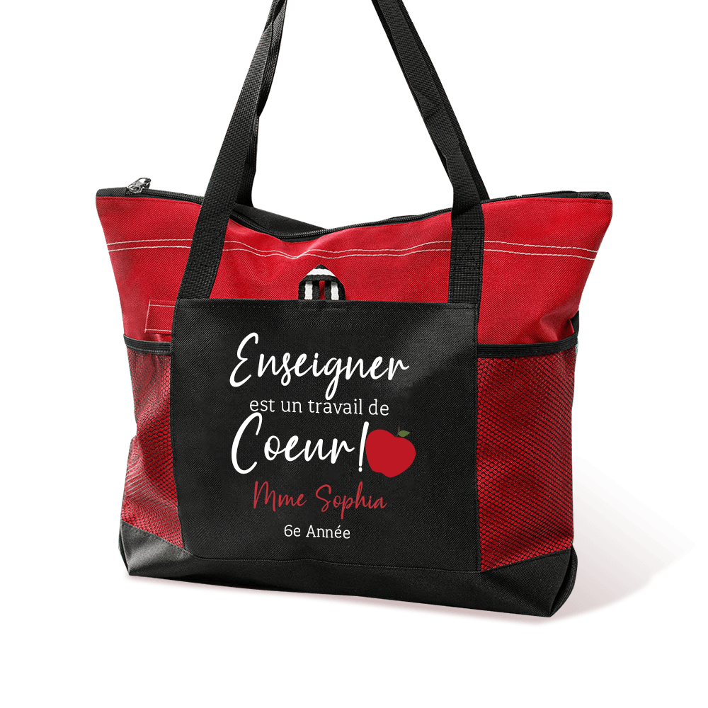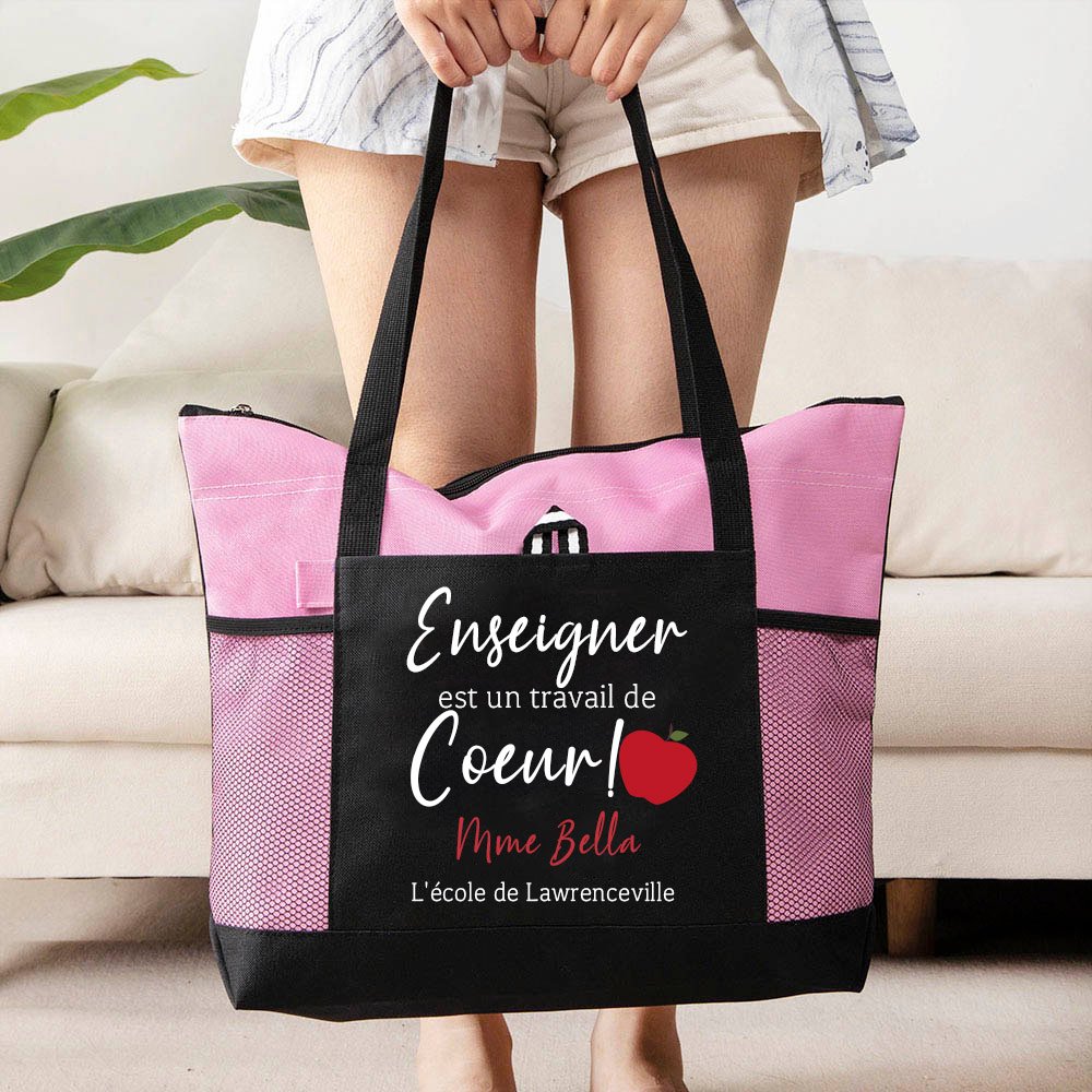 La phrase "L'enseignement est une œuvre de cœur" résume parfaitement la passion, le dévouement et l'amour que les enseignants apportent chaque jour à leur classe. Le motif de la pomme sur ce sac fourre-tout n'est pas seulement adorable, il symbolise aussi la connaissance et la croissance. C'est une façon délicieuse de montrer votre amour de l'enseignement et d'inspirer vos élèves pour qu'ils atteignent leur plein potentiel. Les couleurs vives et l'attention portée aux détails ajoutent une touche supplémentaire à votre look de tous les jours, faisant de ce sac un accessoire remarquable.