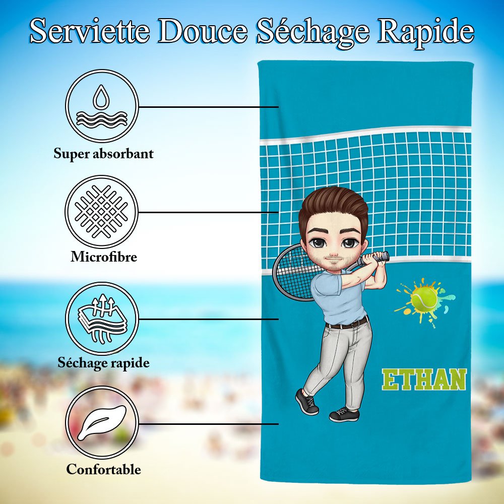 Chaque serviette de plage présente une combinaison astucieuse de personnages de dessins animés amusants et d'éléments sur le thème du ballon, ce qui leur confère personnalité et vitalité. Choisissez parmi les modèles de badminton, de tennis ou de pickleball et ajoutez un nom personnalisé pour créer un style sportif unique.