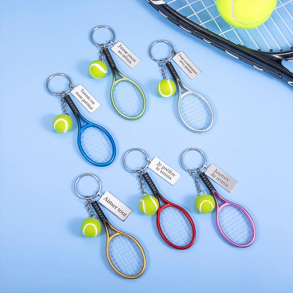 Personnalisez ce porte-clés avec le texte gravé de votre choix, ce qui en fait un cadeau unique et attentionné pour tout amateur de tennis.