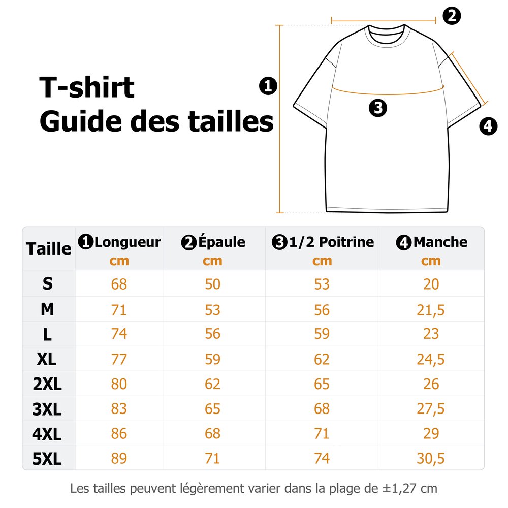 | Mesure: | S, M, L, XL, 2XL, 3XL, 4XL, 5XL |