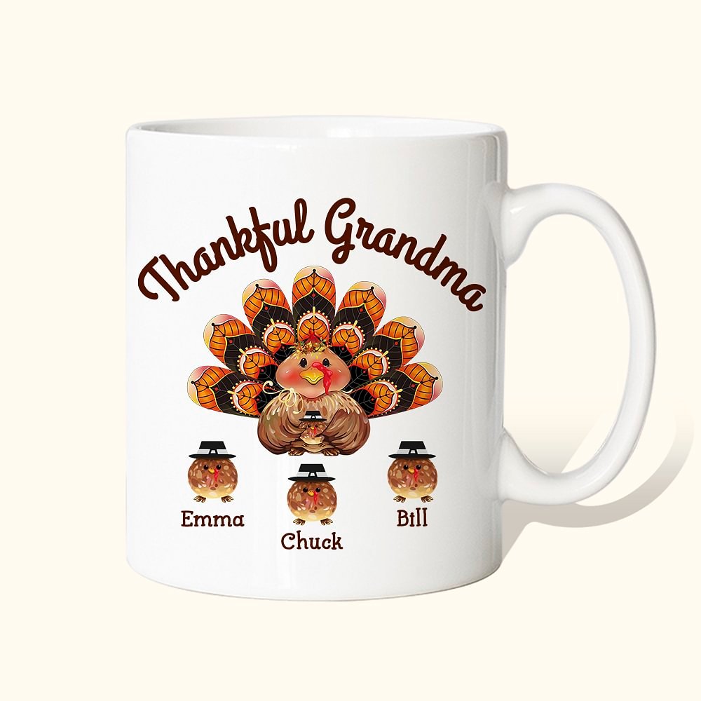 Créez un mug au design unique de dinde pour les membres de votre famille, et vous pouvez même personnaliser le nom de chaque membre de la famille. Cela ajoutera certainement à l'atmosphère du prochain jour de Thanksgiving pour votre grand-mère !