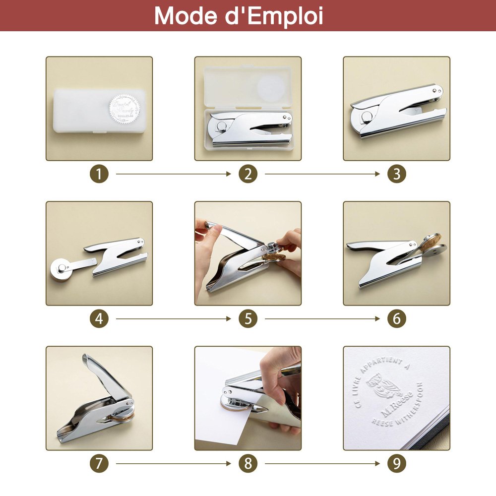 Fabriqué en acier inoxydable et en laiton de haute qualité, il permet d'obtenir des motifs de tampons clairs et précis, et des empreintes nettes à chaque fois. La construction durable garantit que votre embosseur durera des années.
