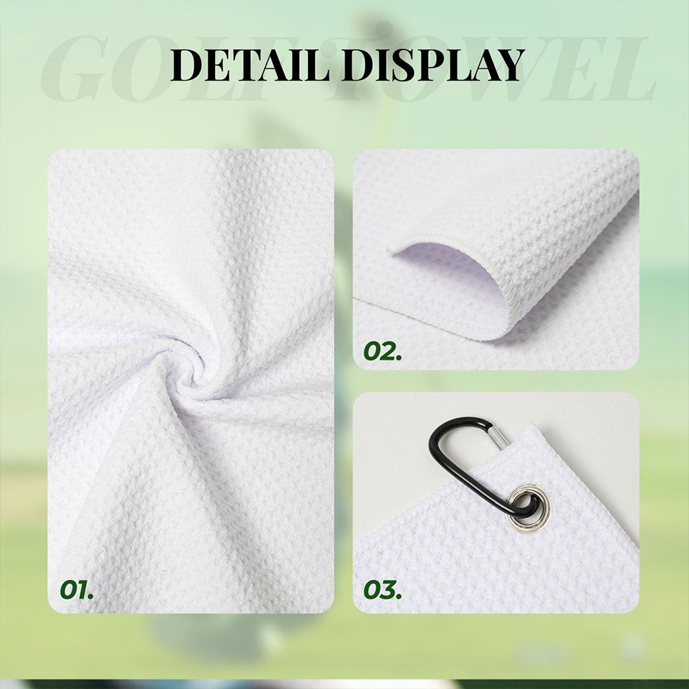 Il peut être utilisé non seulement pour essuyer le parcours, mais aussi comme chiffon de nettoyage dans la vie de tous les jours. Qu'elle soit utilisée pour essuyer les clubs, les mains ou la sueur par temps chaud, elle peut rapidement absorber l'humidité et rester sèche. En même temps, la conception gaufrée augmente la friction de la serviette, ce qui est plus propice au nettoyage de l'équipement de golf et à l'amélioration de vos performances de jeu.