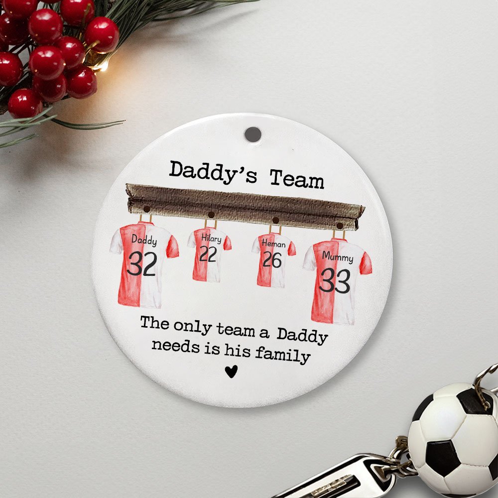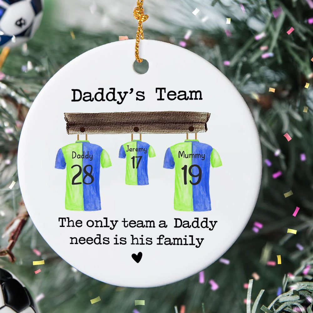 Notre décoration de Noël en forme de maillot de football vous permet de personnaliser les noms et les numéros des membres de votre famille, créant ainsi une équipe de football familiale unique qui représente l'amour de votre famille pour le football. Le design personnalisable en fait un cadeau parfait pour les pères, les grands-pères ou les maris passionnés de football.