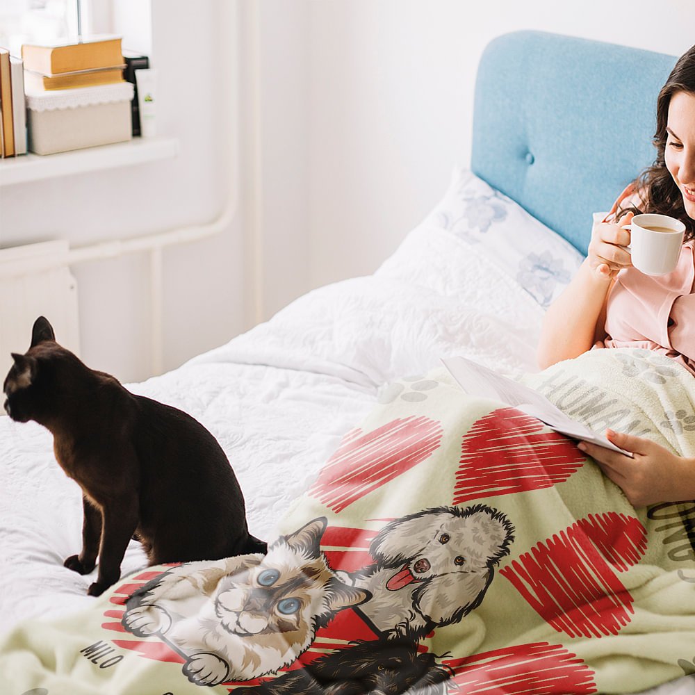 Couverture Personnalisée avec Nom et Motif Chien Chat Coeur Cadeau Anniversaire pour Ceux Qui Aiment les Animaux