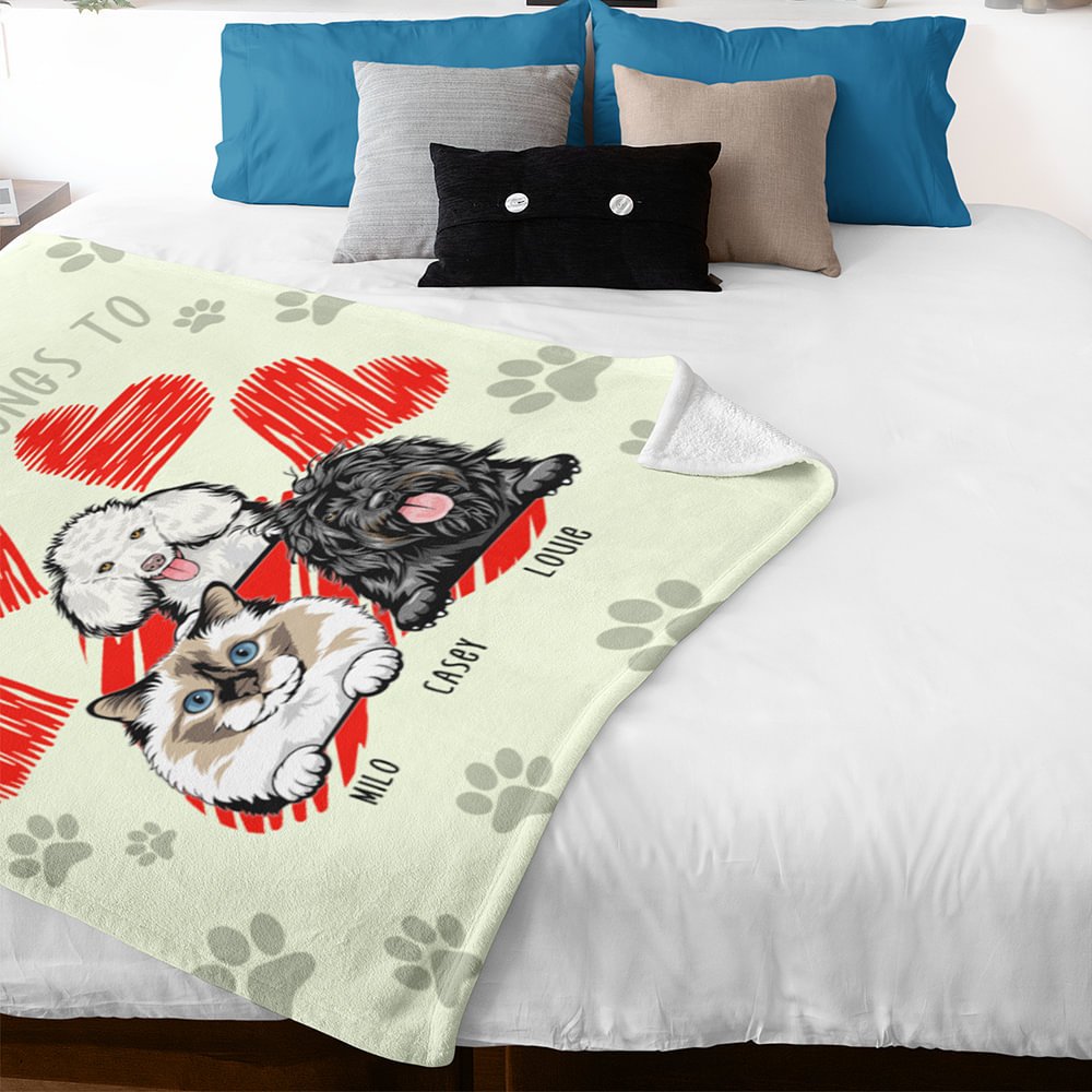 The blanket features a heart-shaped paw print design, symbolizing the deep love and affection we have for our beloved pets. Each paw print represents the imprints they leave on our hearts and the joy they bring to our lives. It's a beautiful and heartwarming reminder of the unconditional love we share with our furry little ones.