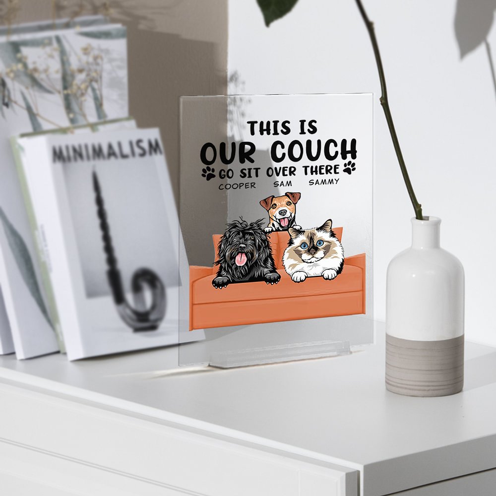 Vous êtes à la recherche du cadeau idéal pour un amoureux des animaux de compagnie ? Ne cherchez pas plus loin que cette plaque acrylique transparente pour animaux. Avec le message humoristique "Ceci est mon canapé, va t'asseoir là-bas" et la possibilité de personnaliser avec 1 à 6 chats ou chiens, cette décoration de bureau de haute qualité ne manquera pas d'apporter un sourire au visage de tout amoureux des animaux.