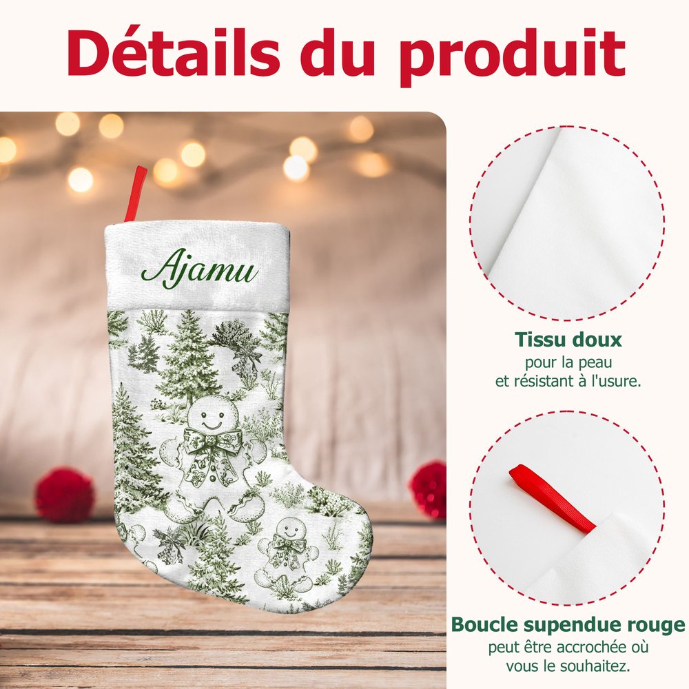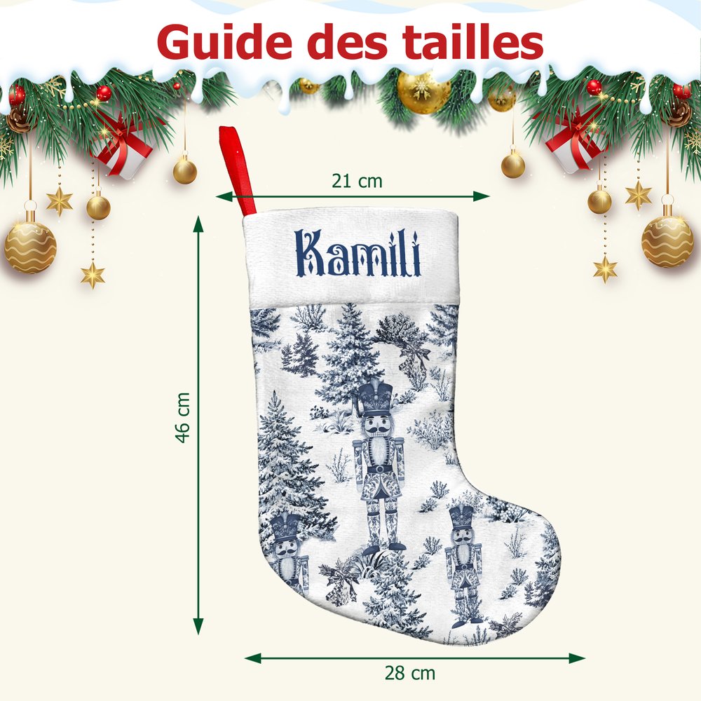 Inspiré de l'impression classique de la Toile de Jouy, ce bas de Noël offre six motifs classiques au choix : Père Noël, Casse-Noisette, Bonhomme de pain d'épices, Renne, Arc et Canne à sucre. Les couleurs vintage créent une riche atmosphère de Noël. Vous pouvez même personnaliser la chaussette avec votre nom, ce qui ajoutera instantanément une touche de féerie de Noël à votre maison.