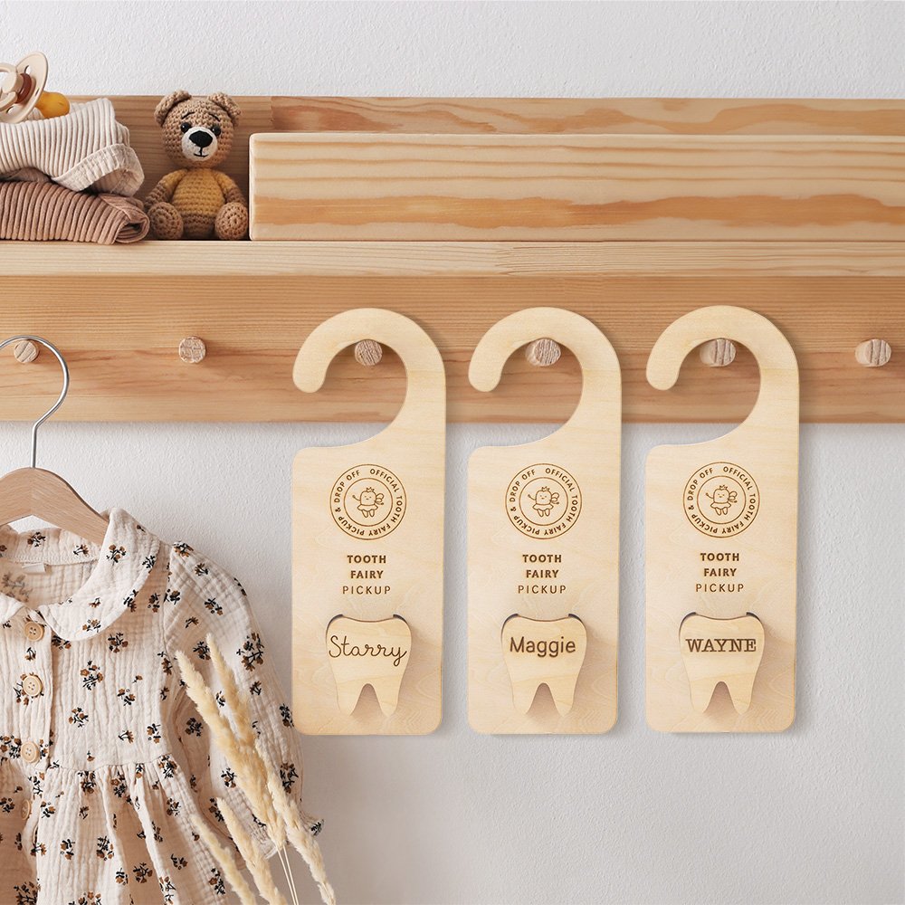 Ce produit est une suspension de porte unique et enchanteresse en forme de dent qui peut être utilisée pour mettre des dents, des pièces de monnaie ou des petits cadeaux. Il est conçu pour ajouter une touche de magie et d'excitation aux expériences des enfants avec la fée des dents. Il peut être personnalisé avec le nom de l'enfant, ce qui en fait un souvenir unique et inoubliable.