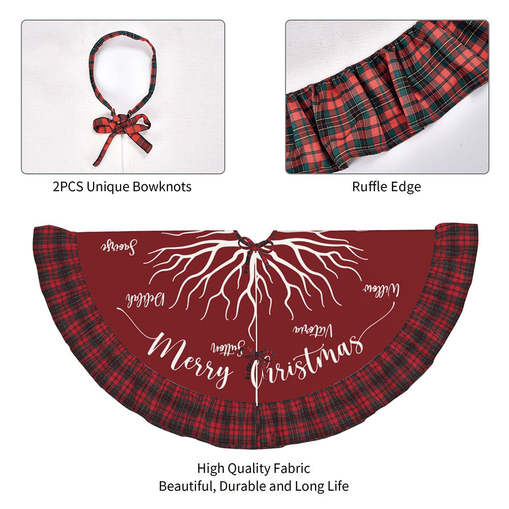 Nos jupes de sapin de Noël sont fabriquées en fibres de polyester de haute qualité, super durables et légères, et sont conçues pour s'adapter à la base de votre sapin. Cette jupe épaisse et durable peut être utilisée tout au long de l'année.