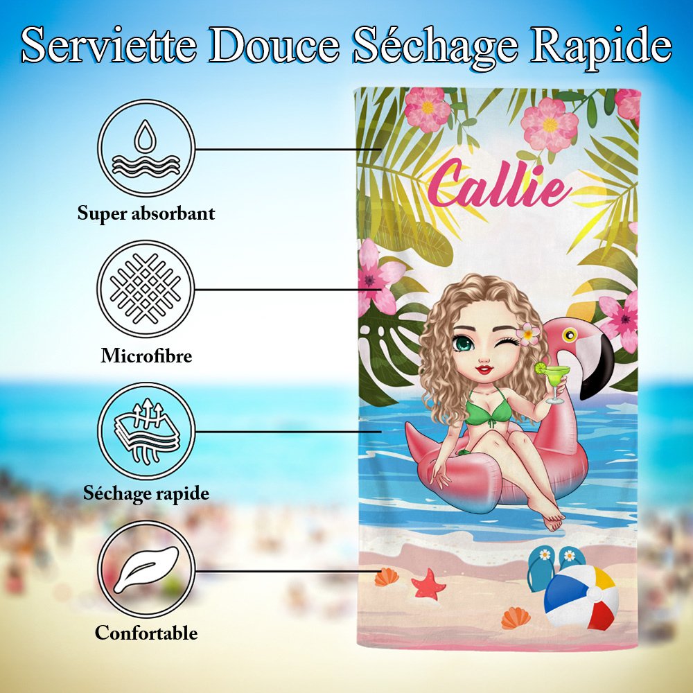 Le design de cette serviette de plage est inspiré par les plantes tropicales et les scènes de plage, incorporant un style estival fort, et le design général est plein d'atmosphère artistique. Il est particulièrement adapté à la personnalisation de personnages de dessins animés d'âges différents et à l'impression de boissons préférées et d'anneaux de natation pour mettre en valeur le style unique de la serviette. Imprimez votre nom exclusif, avec 2 polices et 4 couleurs au choix, faisant de chaque serviette de plage un cadeau attentionné.
