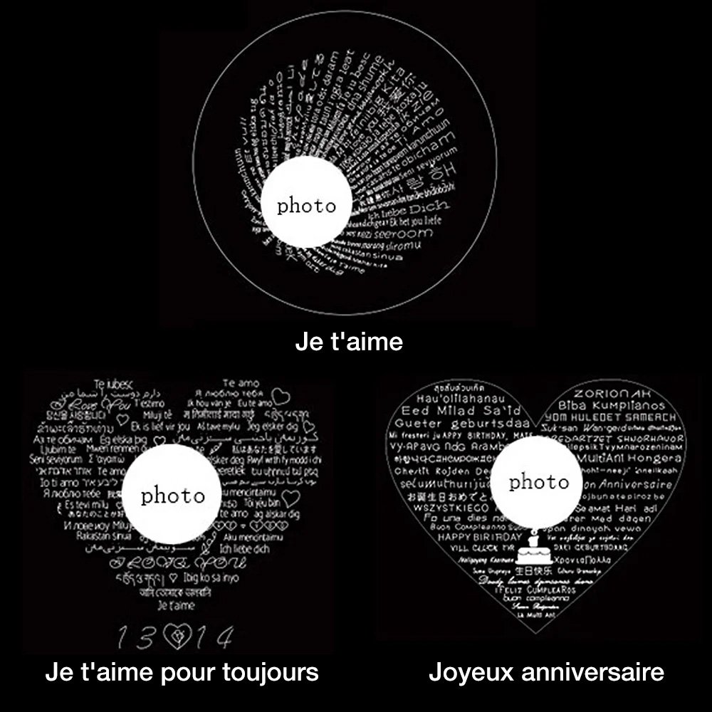 Vous pouvez télécharger une photo ayant une signification particulière et choisir le texte que vous souhaitez exprimer pour le texte autour de la photo. Il convient de noter que, pour garantir la réalisation d'un collier de projection parfait, veuillez vous assurer que les photos sont claires et de haute qualité.