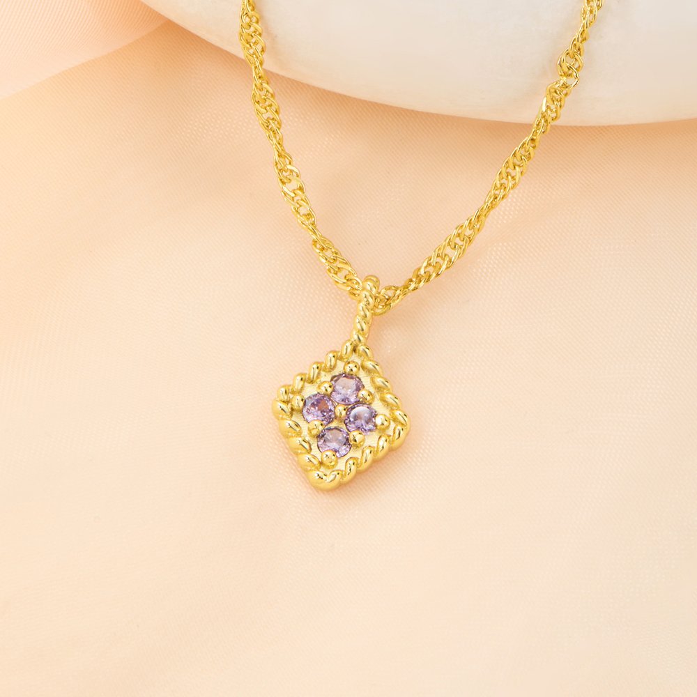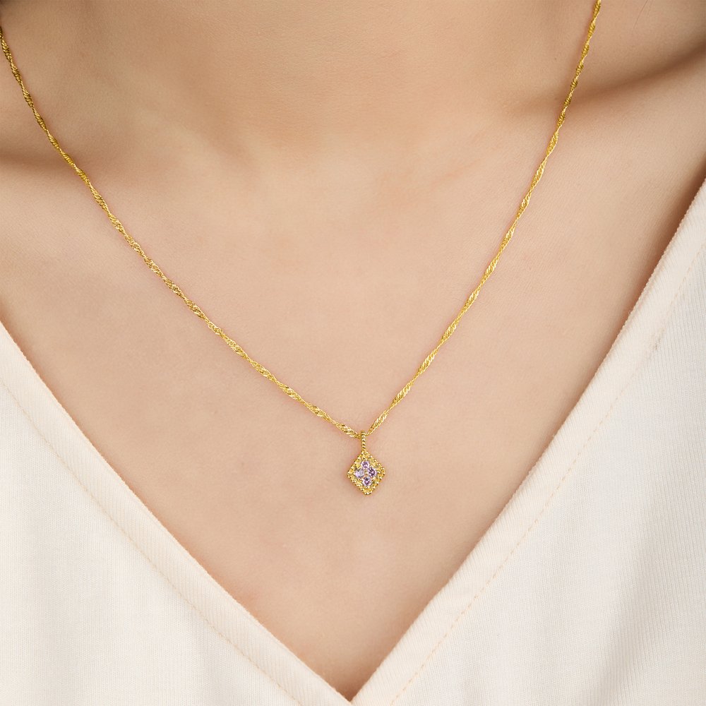 Doté d'une chaîne torsadée de style vintage et d'un pendentif en forme de diamant, ce pendentif peut être personnalisé avec une pierre de naissance correspondant à votre mois. Une pierre de naissance personnalisée apporte un sentiment d'anniversaire unique, combinant une touche vintage avec un attrait décoratif exclusif.