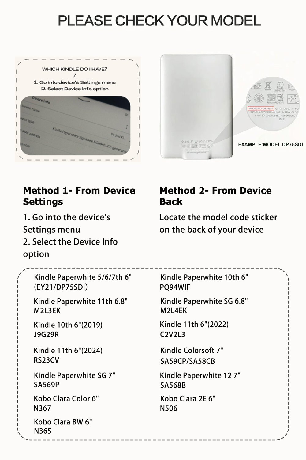 | Mesure: | Kindle 8th, Kindle Paperwhite 5/6/7th 6", Kindle Paperwhite 10th 6", Kindle Paperwhite 11th 6.8", Kindle Paperwhite SG 6.8", Kindle 10th 6"(2019), Kindle 11th 6"(2022), Kindle 11th 6"(2024), Kindle Colorsoft 7", Kindle Paperwhite SG 7", Kindle Paperwhite 12 7", Kobo Clara Color 6", Kobo Clara 2E 6", Kobo Clara BW 6" |