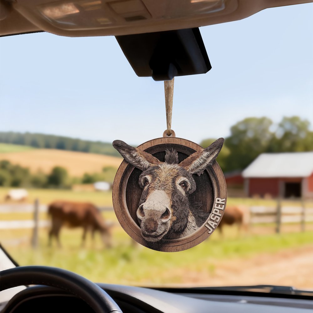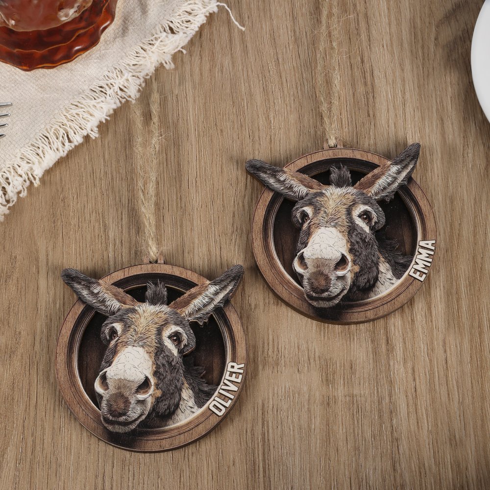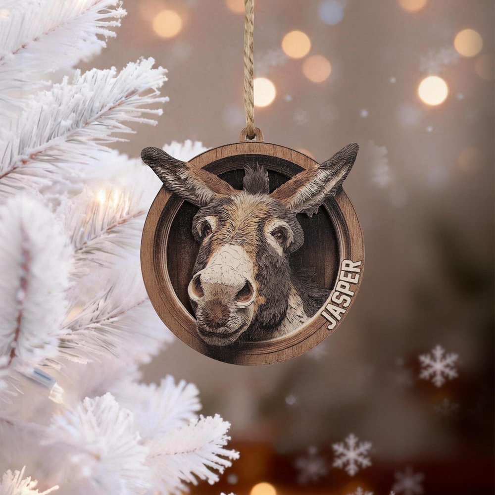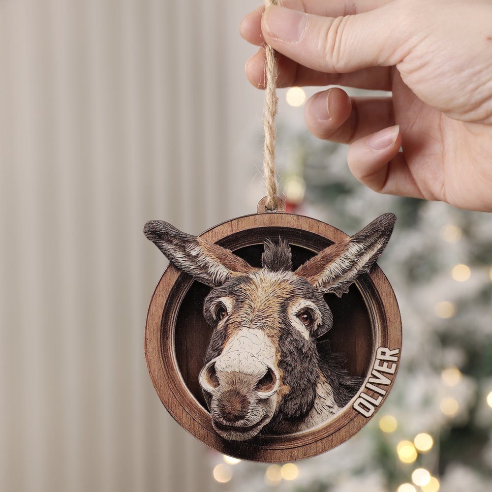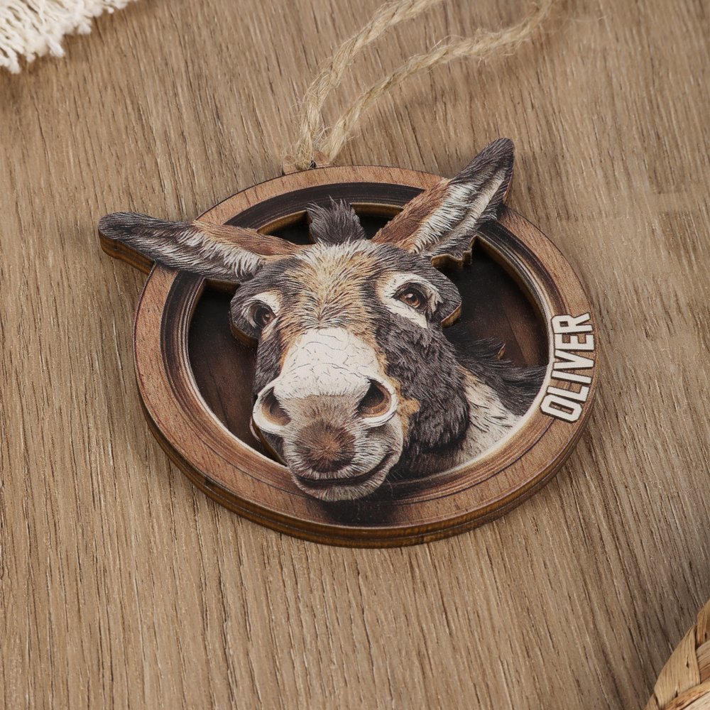 Cet ornement en bois présente des détails réalistes du visage d'un âne, avec des textures de fourrure délicates et de jolies expressions. La finition en bois vieilli crée une atmosphère de ferme rustique. Les bords de l'ornement peuvent être personnalisés avec un nom, ce qui en fait un symbole émotionnel unique tout en reflétant un charme simple et pastoral.