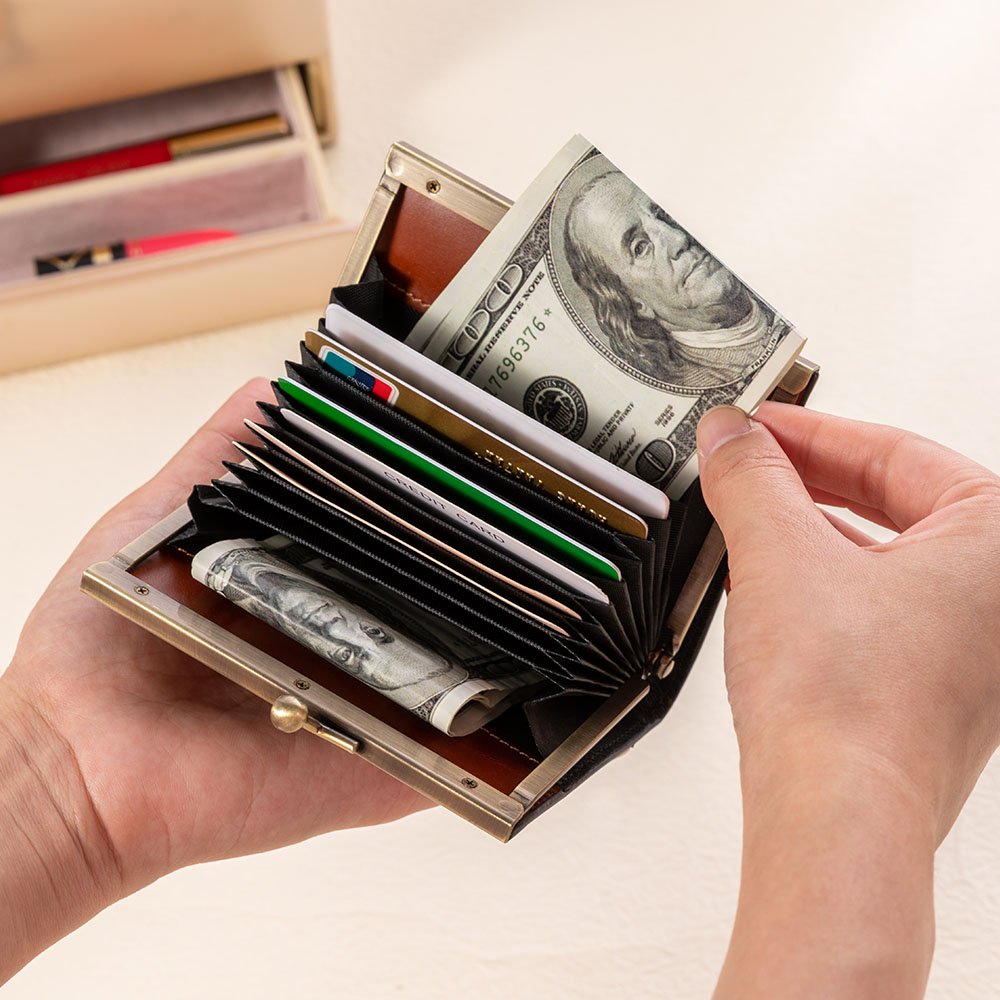 Le portefeuille est conçu avec 11 porte-cartes, offrant suffisamment d'espace pour les cartes de crédit, les cartes d'identité et d'autres cartes essentielles. En plus des porte-cartes, il y a suffisamment d'espace pour les factures, les reçus et d'autres petits objets. La disposition est bien pensée, ce qui facilite l'accès rapide à votre argent et à vos cartes.