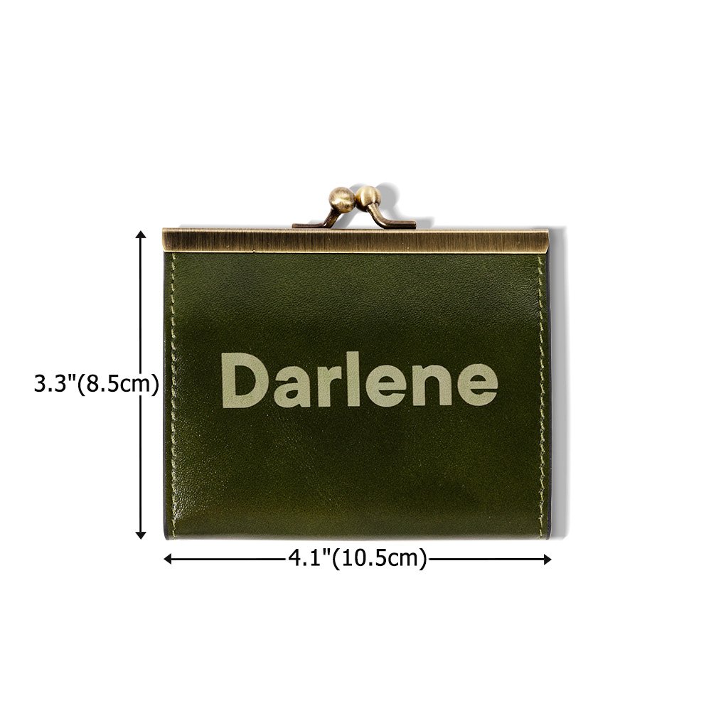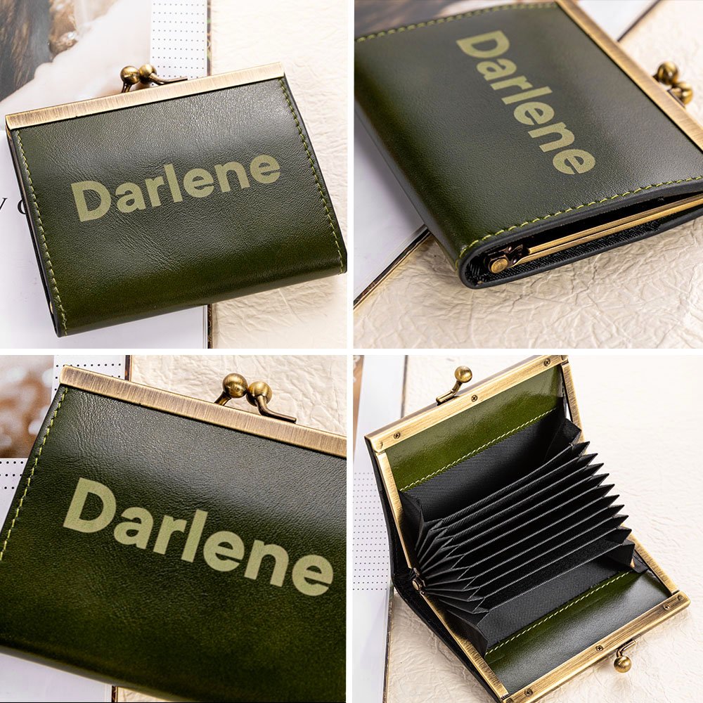 Ce portefeuille est un accessoire étonnant qui allie style et fonctionnalité. Le portefeuille est doté d'une fermeture à baiser classique, qui ajoute une touche de charme ancien et garantit la sécurité de vos effets personnels. Le nom gravé rehausse le design vintage, qui ajoute une touche personnelle et unique au portefeuille.