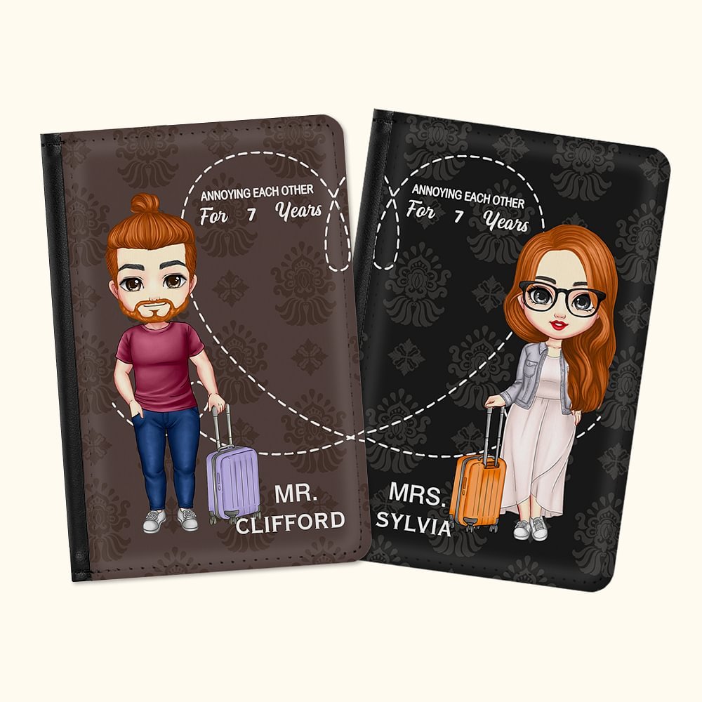 Our personalized passport cover is a delightful gift for couples who love to explore the world together. The cover features a charming adventure-themed design that includes the phrase "Annoying each other for ... years." This personalized touch adds a romantic and adventurous flair to their travel experiences.