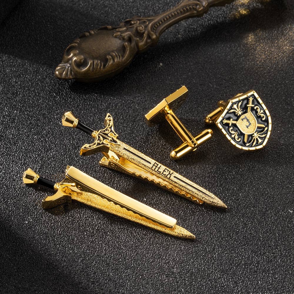 Les boutons de manchette en forme de bouclier représentent une défense solide, reflétant l'esprit d'un chevalier qui résiste à tous les défis. En revanche, la pince à cravate en forme d'épée incarne l'offensive audacieuse, représentant la nature intrépide du chevalier.