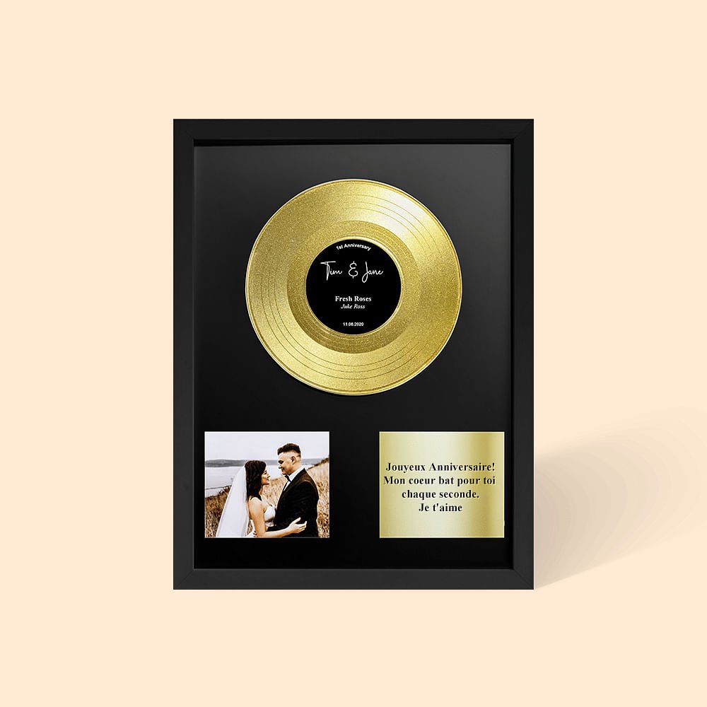 Le disque vinyle peut être personnalisé avec des noms, des chansons, des photos et un message attentionné, ce qui en fait un cadeau touchant et merveilleux pour tout amateur de musique !