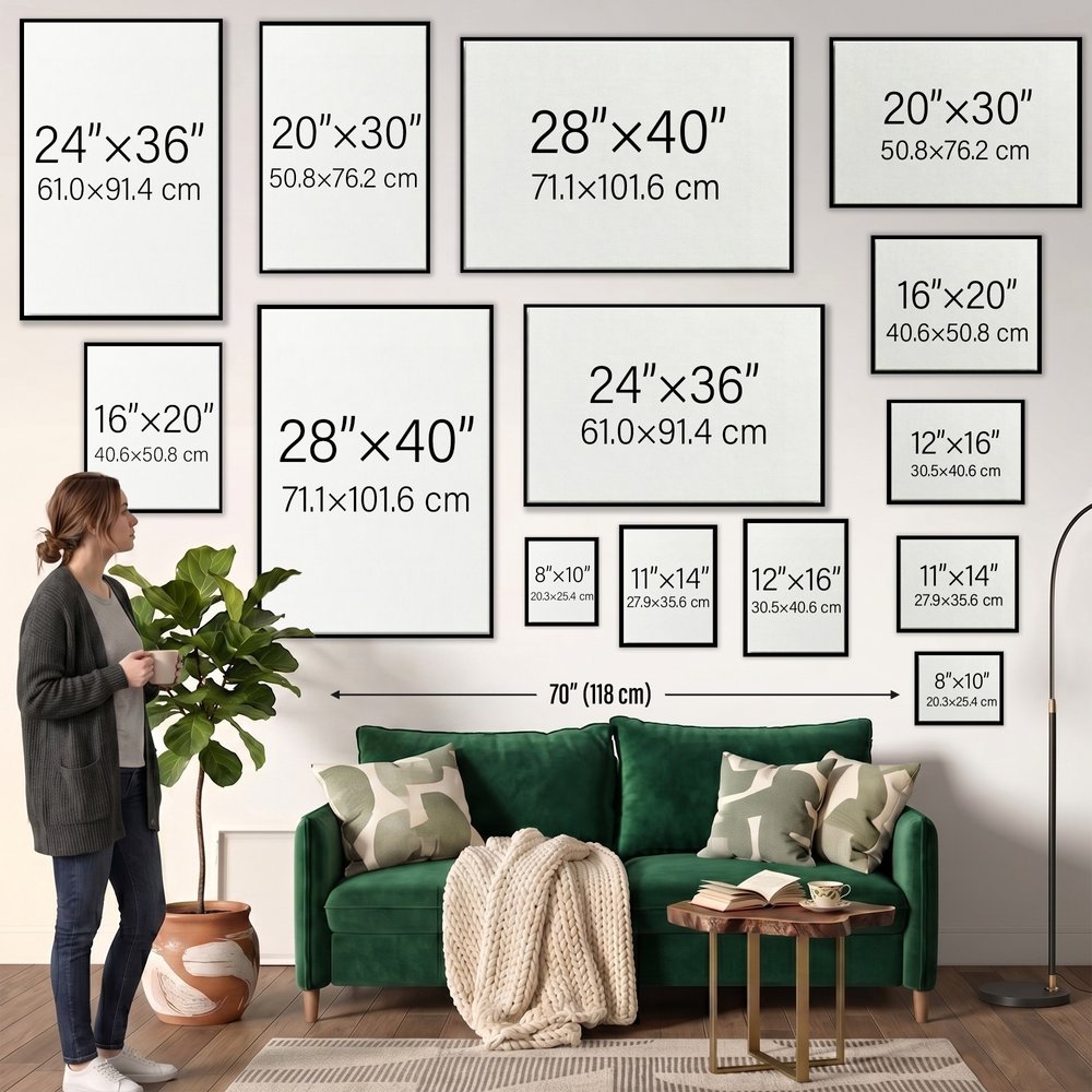 Pour obtenir la meilleure qualité d'impression Giclée, veuillez télécharger des photos originales à haute résolution (nous vous contacterons si la résolution est trop faible). Les détails importants, tels que les visages ou le texte, doivent être placés à au moins 1,5 pouce des bords, car ils s'enrouleront autour du cadre. Veuillez mesurer votre espace mural avant de passer commande, car les maquettes sont uniquement destinées à l'affichage. Pour les tirages fractionnés ou les expositions murales, nous recommandons de laisser un espace de 2 à 3 pouces entre chaque pièce pour un arrangement équilibré et agréable à l'œil.
