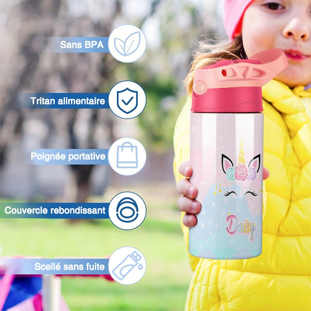 Cadeau idéal pour vos enfants, votre famille ou vos amis. Votre bouteille d'eau de choix à emporter à l'école, en plein air, ou pour toute autre activité, afin que vous puissiez vous réapprovisionner en eau à tout moment ou partout où vous en avez besoin.
