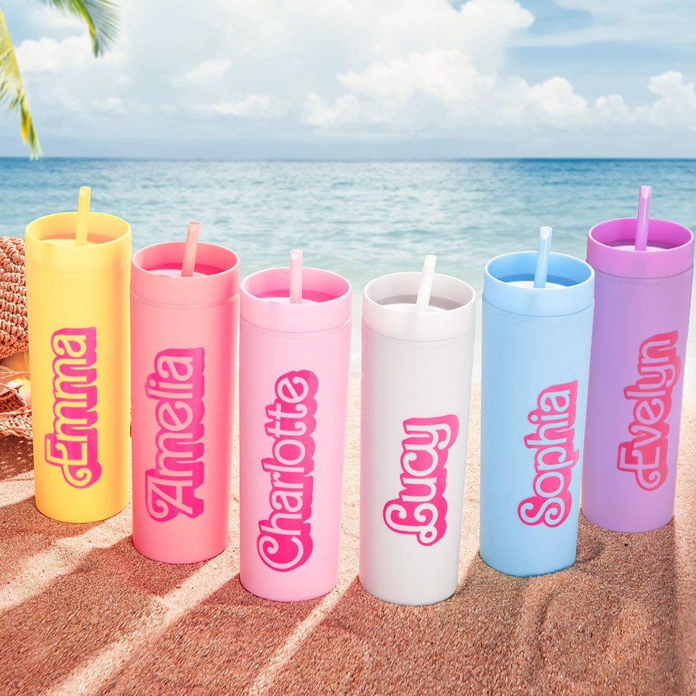 Quench your thirst in style with our pink doll inspired custom insulated tumbler. Combination of pink color scheme and specific retro dolly fonts.With its eye-catching design, it adds a touch of glamour to any setting, making it the ultimate fashion accessory for your beverages.