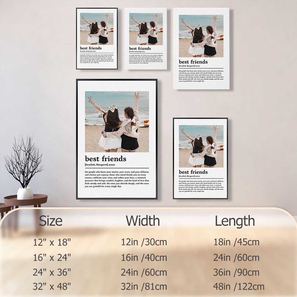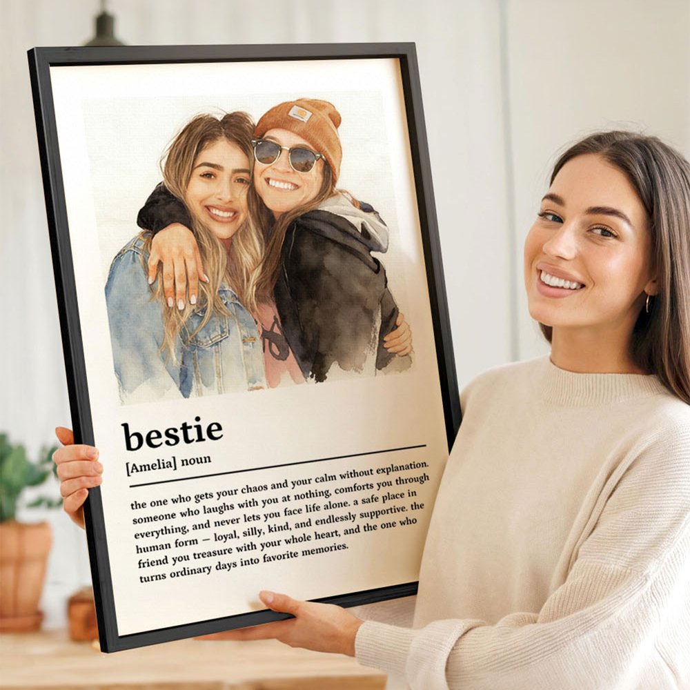 Nous sommes fiers de vous présenter les exquises affiches d'art photo "Bestie", créant des œuvres d'art uniques pour vous et vos amis les plus proches. Ce poster est disponible en trois options : toile, encadré ou non encadré, avec des noms, des titres et des textes personnalisables. Vous pouvez choisir de télécharger la photo originale ou de la transformer en de superbes effets d'aquarelle et de crayons de couleur, ajoutant ainsi une touche artistique à votre décoration intérieure.