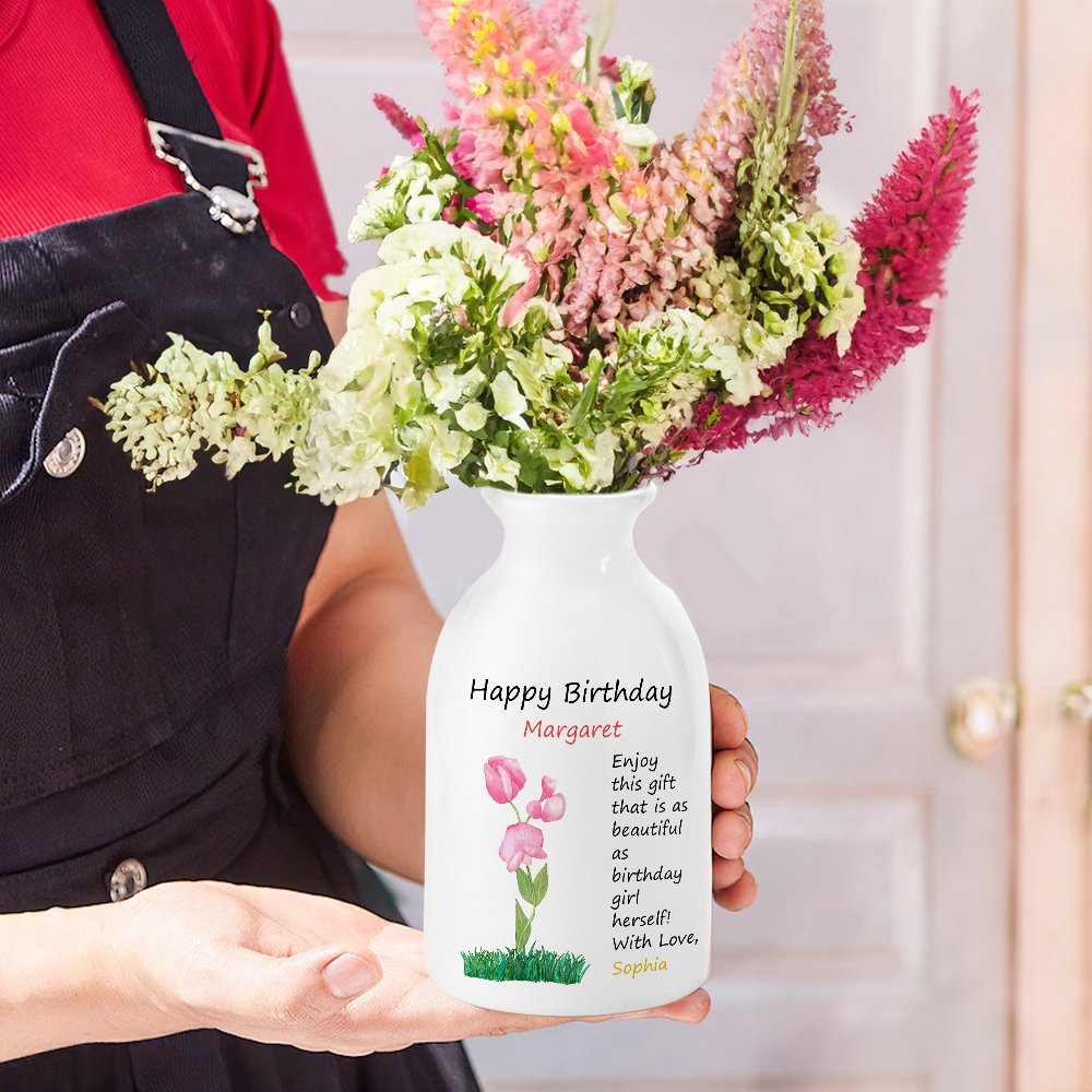 Vase en Céramique Personnalisé avec Nom Motif Fleur Décoration de la Maison Cadeau Fête Anniversaire pour Femme