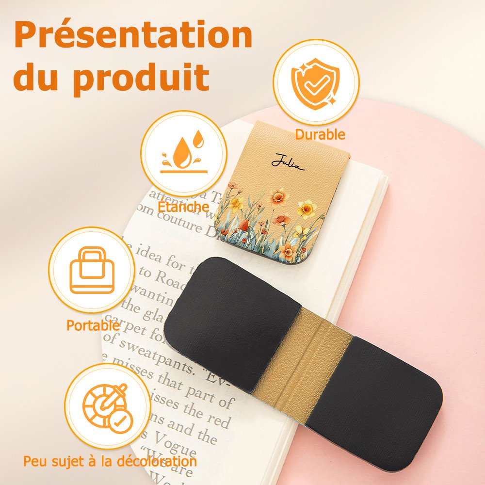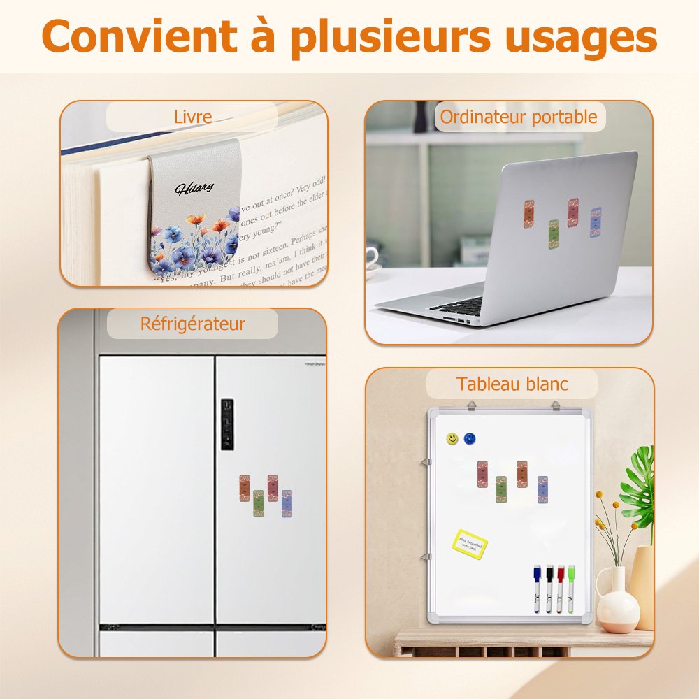 Fabriqués dans une matière de haute qualité, ils offrent un toucher délicat et une texture exceptionnelle. Ils sont dotés d'un aimant qui permet de les fixer solidement sans endommager le livre lui-même, ce qui résout les problèmes posés par les marque-pages traditionnels qui peuvent facilement se détacher et endommager les pages, tout en conciliant l'expérience de l'utilisateur et la protection du livre.
