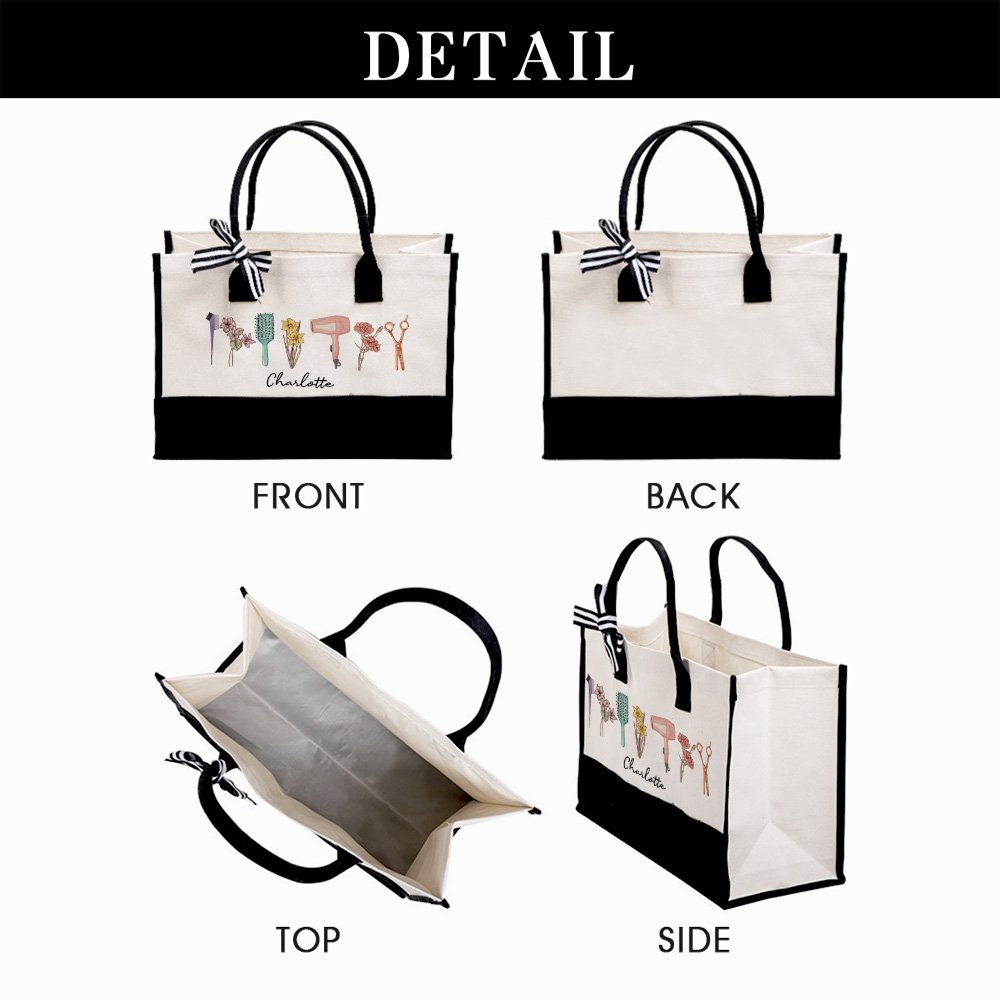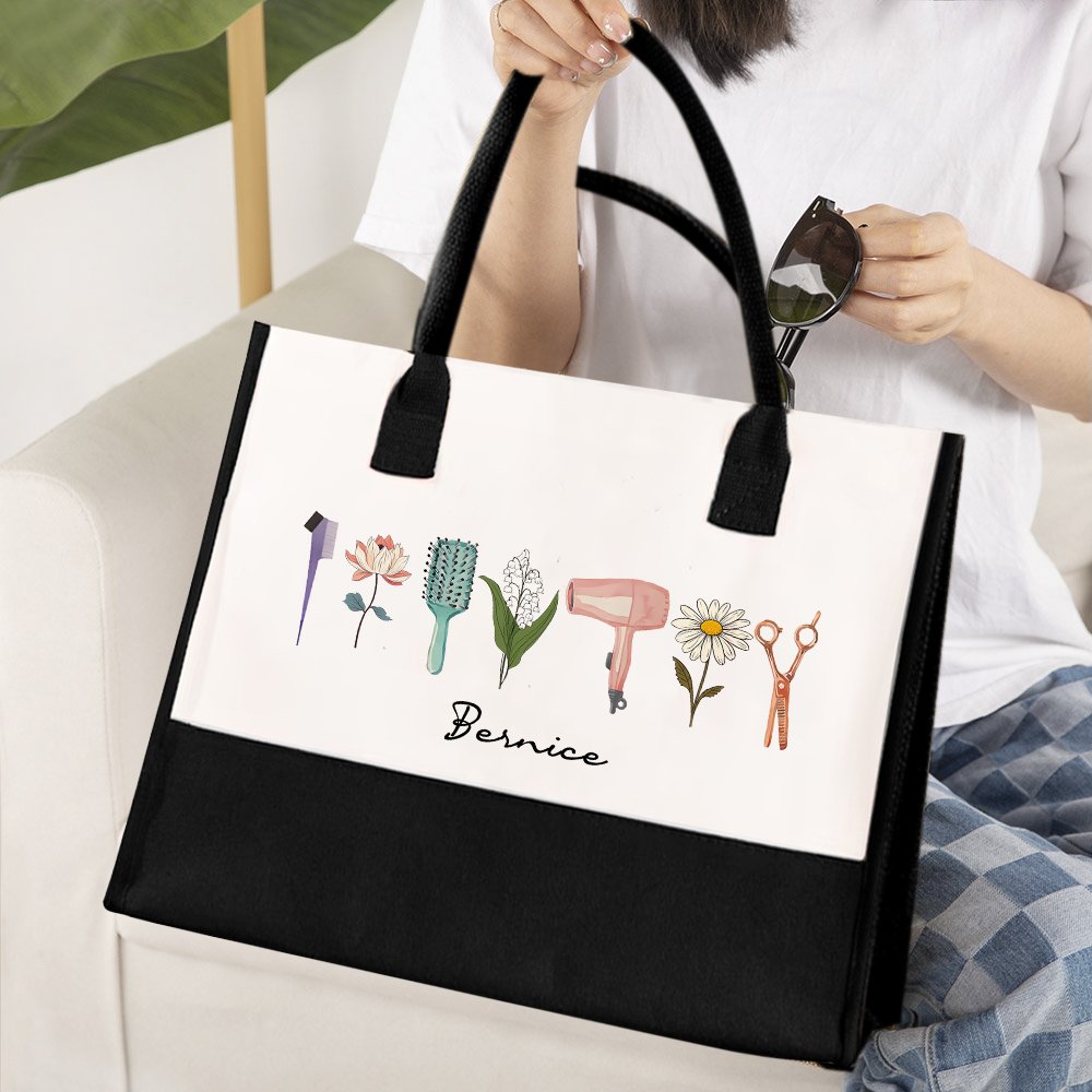 La fusion d'éléments de coiffure avec le motif de la fleur de naissance est la principale raison pour laquelle ce sac fourre-tout se distingue. Les ciseaux à cheveux, les peignes et les sèche-cheveux sont les symboles parfaits des coiffeurs. La combinaison de ces outils de coiffure avec la fleur de naissance très personnalisée est une forte collision d'élégance et de professionnalisme, exprimant la poursuite et l'amour de la coiffure. Le design du nom personnalisé rend le sac encore plus unique.