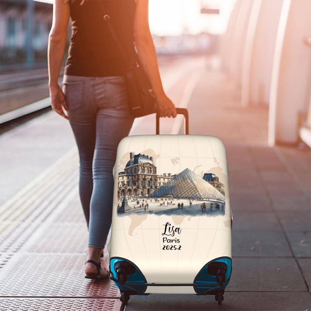 Personnalisez ce couvre-bagages avec votre nom, une date et un lieu pour en faire un accessoire unique reflétant vos aventures de voyage. Doté d'un design vivant et d'images exquises, ce couvre-bagages est imprimé de 69 sites touristiques célèbres parmi lesquels vous pouvez choisir, notamment Times Square et la Tour Eiffel, ce qui en fait un article pratique et à la mode.