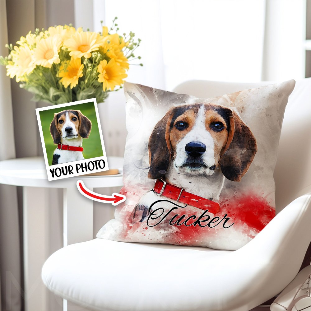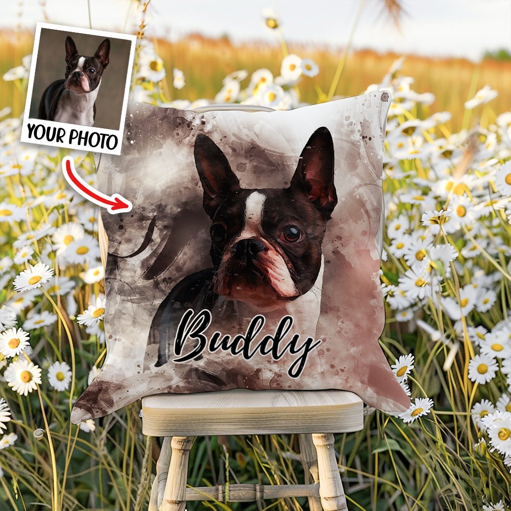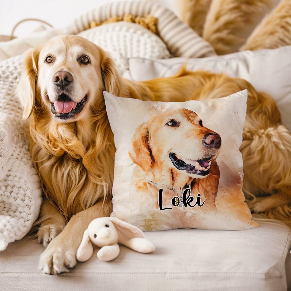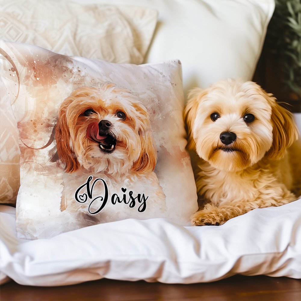Notre housse de coussin personnalisée à l'effigie d'un animal de compagnie est un cadeau magnifique et sincère pour les amoureux des animaux. En incorporant une image de style aquarelle de leur ami à fourrure et en ajoutant le nom de leur animal, cette housse de coussin devient un souvenir unique et précieux qui célèbre le lien spécial entre l'animal et son propriétaire.
