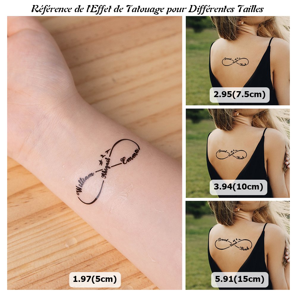 Vous pouvez personnaliser ces tatouages en y ajoutant trois noms, ce qui les rend uniques. C'est une façon réfléchie de porter les noms de ceux que vous chérissez avec vous où que vous alliez.
