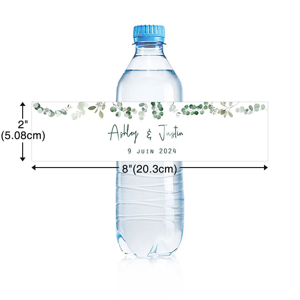 Avec des dimensions de 8" x 2", ces étiquettes s'adaptent parfaitement à la plupart des bouteilles d'eau de taille standard. Elles sont non seulement idéales pour les fiançailles et les fêtes nuptiales, mais elles peuvent également être utilisées pour d'autres événements tels que les anniversaires, les fêtes de fin d'année et même les réunions de famille.