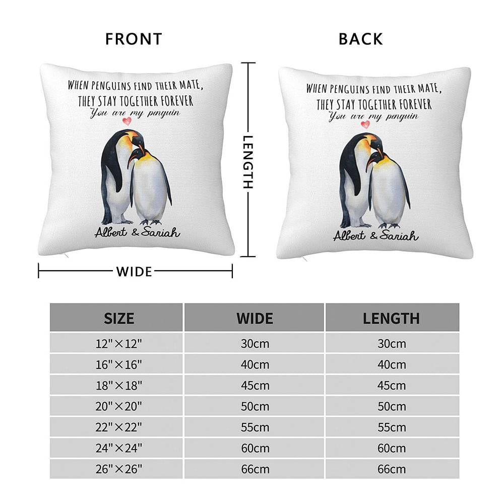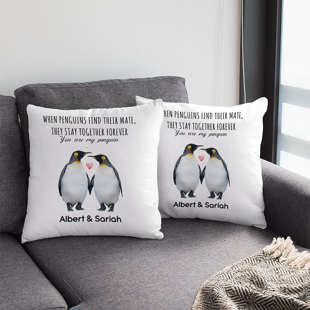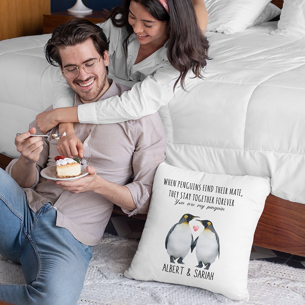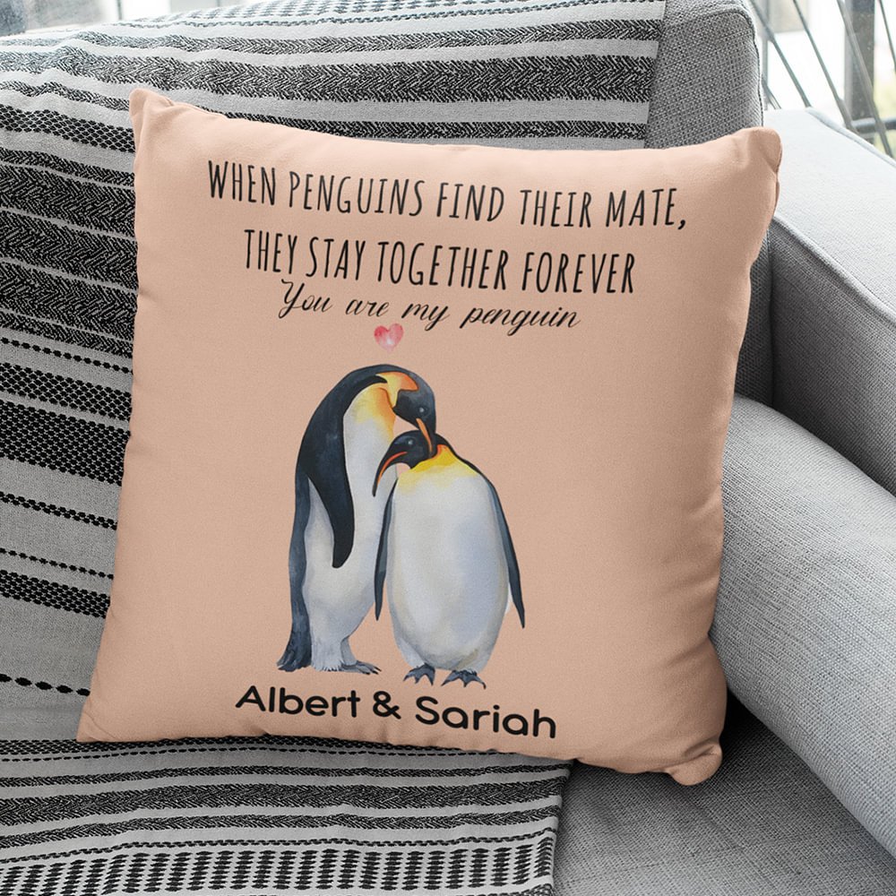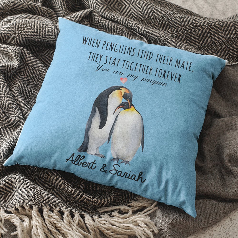 La housse de coussin "Quand les pingouins trouvent leur partenaire, ils restent ensemble pour toujours" est un cadeau unique qui peut être personnalisé avec le nom du couple. Cela ajoute une touche spéciale au cadeau, le rendant vraiment unique et mémorable.