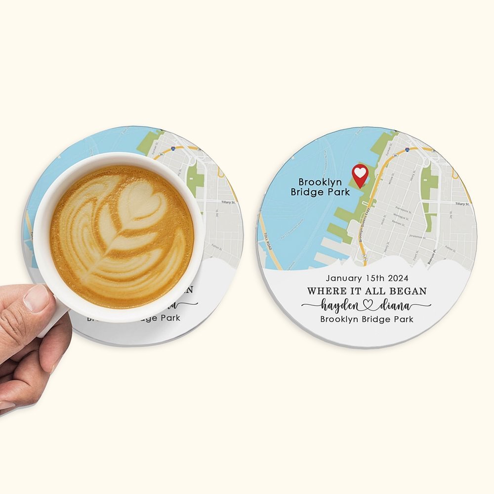 Commémorez l'endroit spécial où votre histoire d'amour a commencé grâce à nos sous-verres cartonnés "Where It All Began" (Où tout a commencé). Ces sous-verres présentent un design unique qui capture l'essence de votre relation, qu'il s'agisse de l'endroit où vous vous êtes rencontrés pour la première fois, de l'endroit où vous vous êtes mariés ou d'un lieu de vacances qui vous est cher. Rehaussez votre décoration intérieure avec cette touche personnalisée et significative.