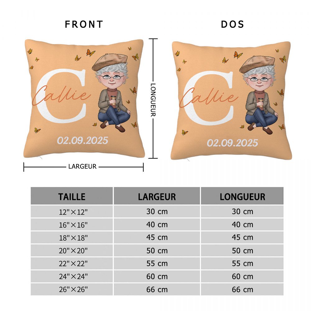 Cette housse de coussin personnalisée présente un motif réconfortant qui associe une charmante femme en dessin animé à de ravissants papillons, ce qui en fait un cadeau attentionné pour vos proches. Personnalisez-la en ajoutant un nom pour exprimer votre appréciation et votre amour pour les personnes extraordinaires de votre vie.