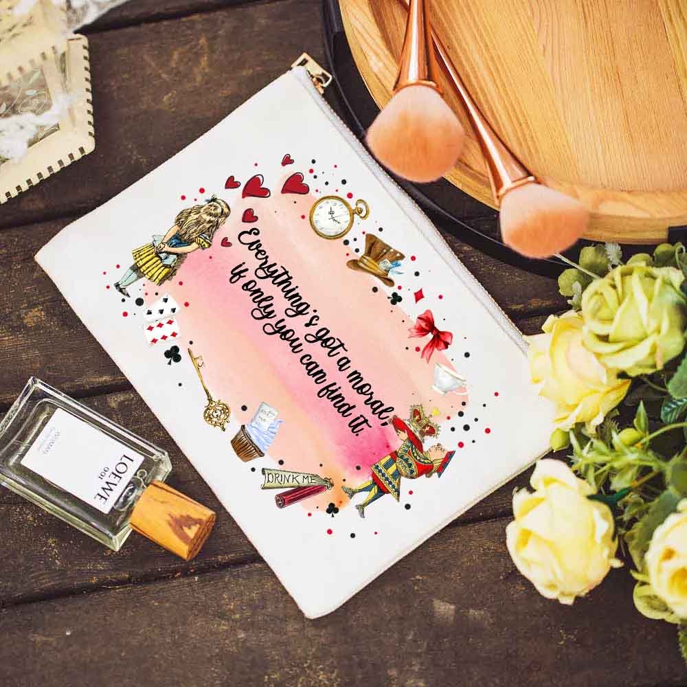 La pochette à cosmétiques a un design de fond spécial de pays des merveilles, et vous pouvez également personnaliser le nom sur la pochette à cosmétiques pour la rendre encore plus spéciale.